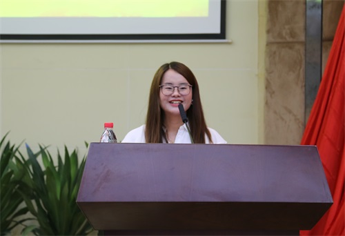 优秀党务工作者代表邵璐作了发言,她围绕“坚持严以律己,树立党务工作者的形象”“认真履职,不断强化支部政治功能和组织力”“重视梯队培养,加强支部班子队伍建设”“坚持标准,提升发展党员质量”“规范管理,加强党员日常教育”“引领示范,充分发挥学生党员先锋模范作用”等六个方面内容与大家分享了从事党务工作的体会。