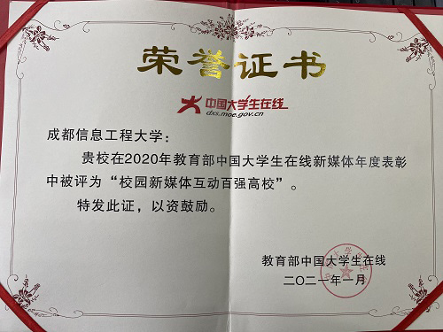 学校新媒体始终以习近平新时代中国特色社会主义思想为指导,坚持互联网+思政的思维模式,打造网络思想政治工作“朋友圈”,搭建全方位、多层次、多声部的媒体矩阵,建好、用好、发展好全维度网络思想政治育人平台。2020年,学校官方微信、微博、抖音、B站等新媒体平台共发布信息3200余条,围绕疫情防控、爱国荣校、学校重点工作、时代责任和历史使命等主题,发布“防疫知识”“喜迎党代会·回眸成果”“榜样的力量”“美在成信”“微关注”“小信说”等内容,在师生中引起广泛关注,先后被新华社、学习强国、共青团中央、中国教育报、四川日报、锦观新闻、红星新闻等各大媒体转发报道。在全国高校微博影响力排名中,“三亿网”微博平台多次入围全国50强,最高排名全国第7名。在四川省高校排名中,基本保持前10名。学校官方微博荣获2020年四川教育政务新媒体高校微博影响力奖。