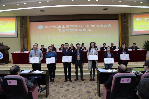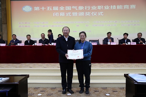 【本网讯】11月19日上午,经过两天激烈角逐,第十五届全国气象行业职业技能竞赛暨第四届全国气象行业县级综合气象业务职业技能竞赛在我校落下帷幕。中国气象局副局长于新文、中国农林水利气象工会全国委员会主席蔡毅德、中国气象局综合观测司副司长裴翀、四川省气象局党组书记彭广、我校校长余敏明等出席闭幕式。闭幕式由中国气象局综合观测司副司长田浩主持。