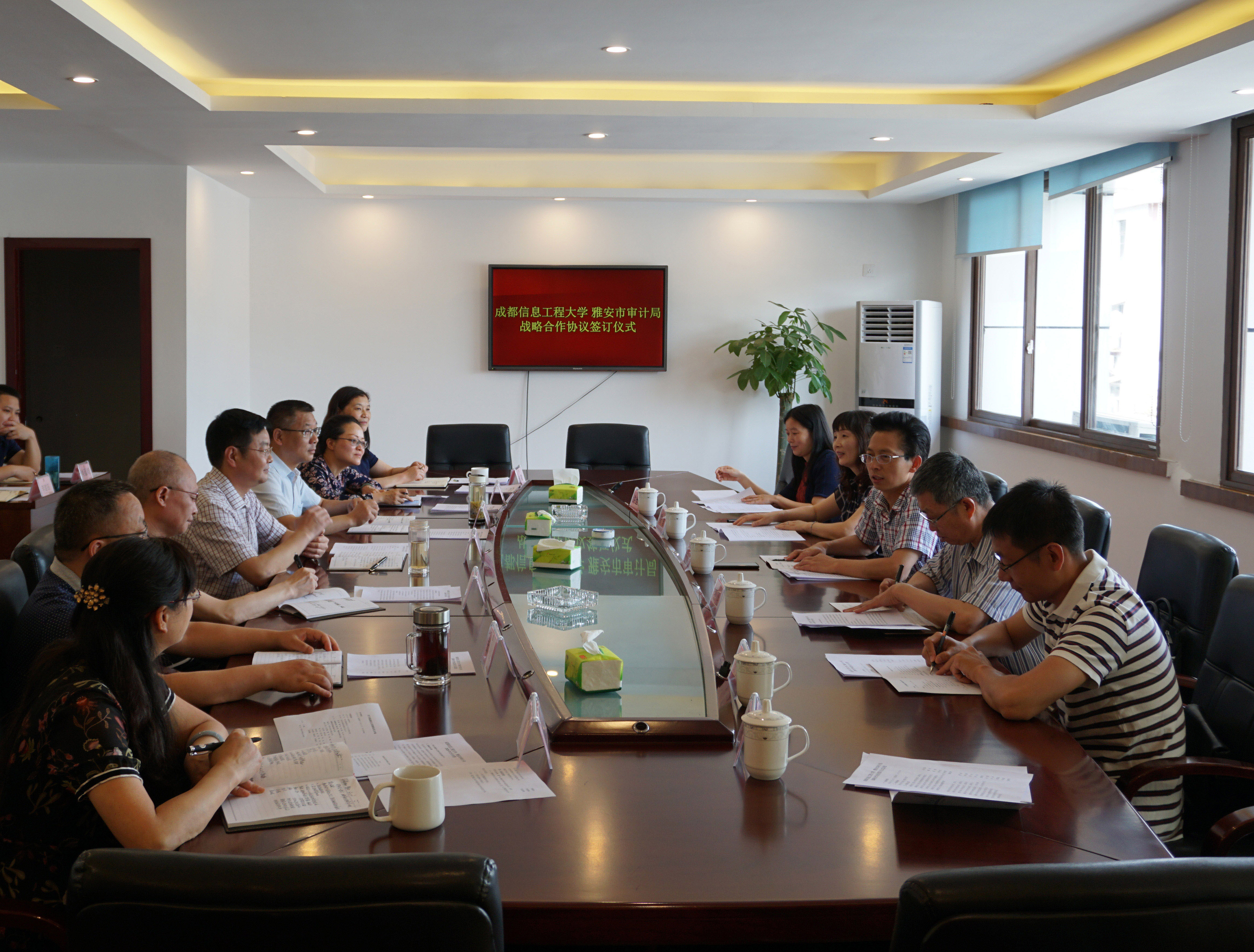 签约仪式后双方参会人员围绕如何在战略合作协议下开展合作,共同推动大数据综合审计管理平台建设,强化科技与投资审计的深度融合发展,构建自然资源资产审计、乡村振兴审计的评价指标、审计方案,提升审计培训人员的政治理论水平、信息化水平和审计业务能力等方面展开了研讨交流。