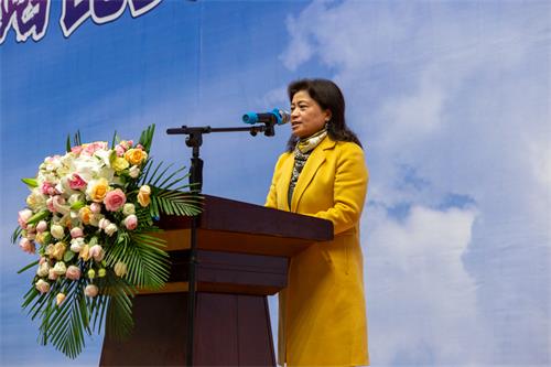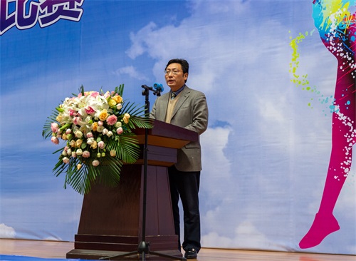 赖英莉宣布2019年四川省大学生“磬墨体育杯”健美操、啦啦操、体育舞蹈比赛开幕。