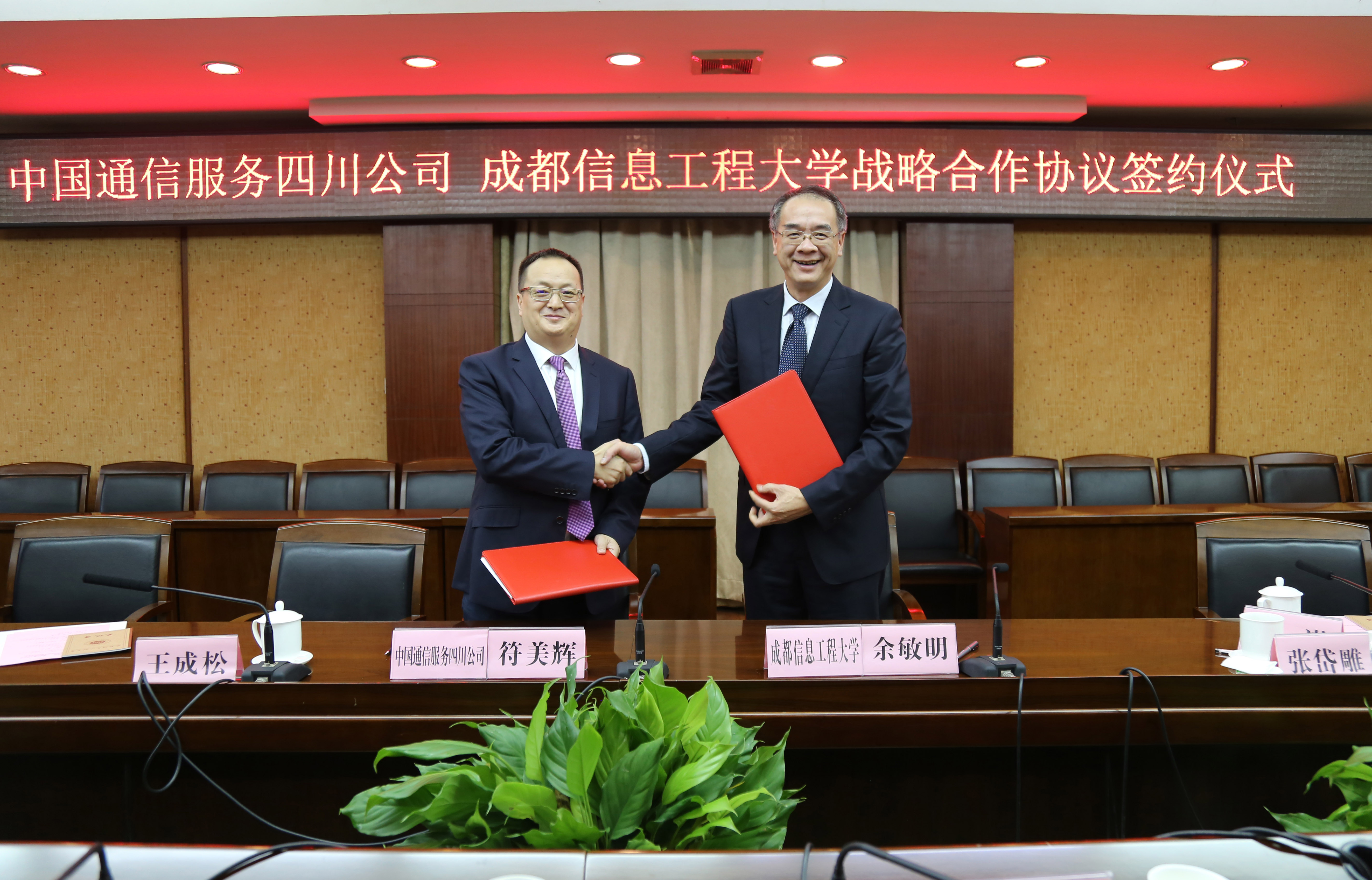 余敏明代表学校对中国通信服务四川公司领导一行的到来表示热烈欢迎,向公司对我校的鼎力支持表示诚挚感谢,并简要介绍了学校的发展情况。他谈到,学校高度重视与地方政府、科研院所和ICT企业开展全方位交流与合作。中国通信服务四川公司在通信与信息化领域优势明显,校企双方在智慧校园、智能安全用电、智能消防、智慧物业、人才培养及共享等领域具有广泛的合作前景,可以加强优势互补,推动互利合作,在前沿理论研究、科技成果转化、实验室、研发基地、企业人才培养等方面加强联系,促进共同发展。此次合作是一次大胆创新和尝试,一定能够在四川乃至全国,在智慧校园建设方面,做出校企紧密合作的领先典范!