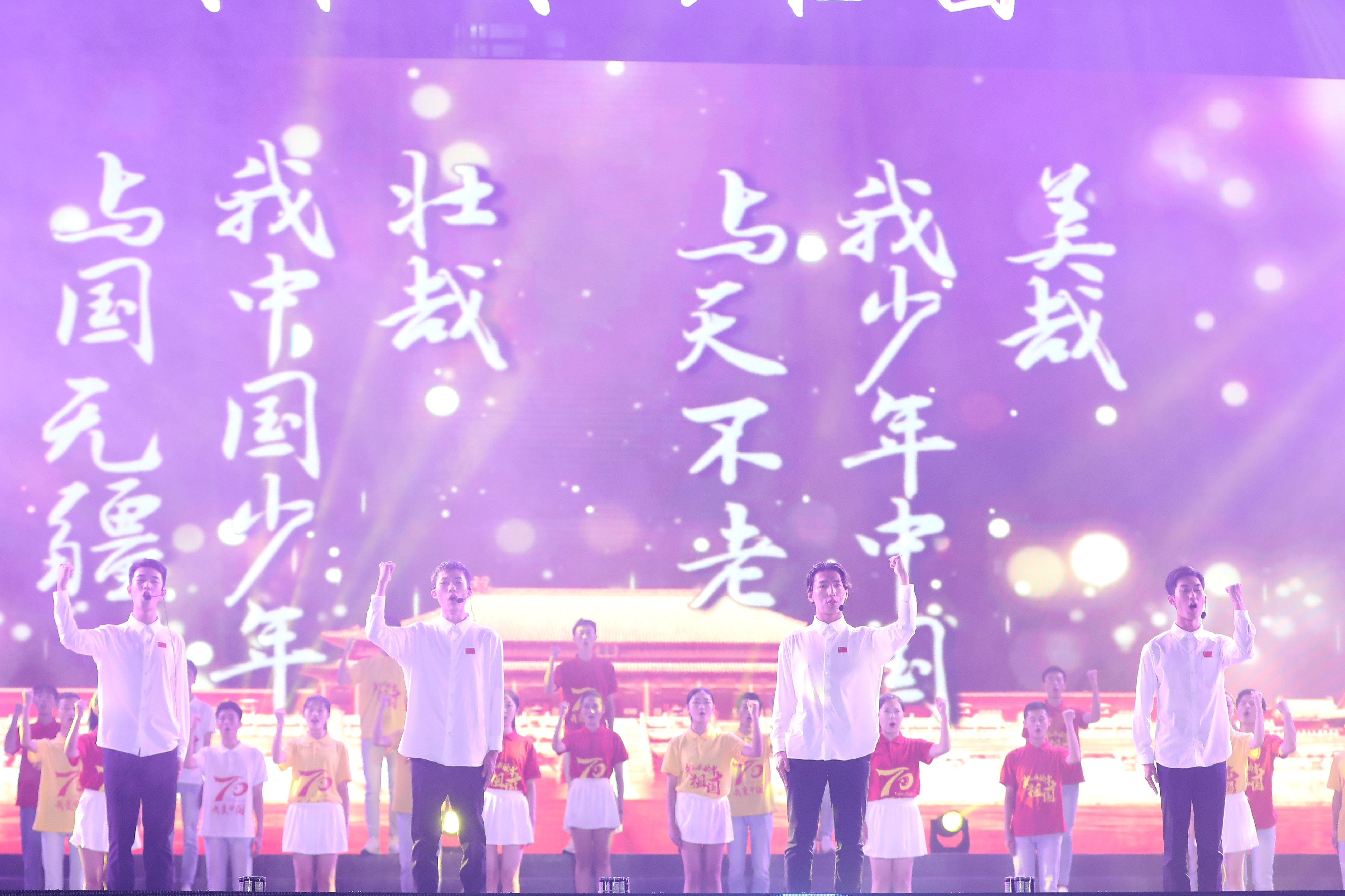 晚会现场,学校党委副书记马洪江领誓,全体师生庄严宣誓:“爱国诚信,友善文明;遵纪守法,德才兼备;爱生敬业,求实创新;尊师好学,励志笃行;不忘初心、牢记使命;以人为本,追求卓越;成于大气,信达天下!”