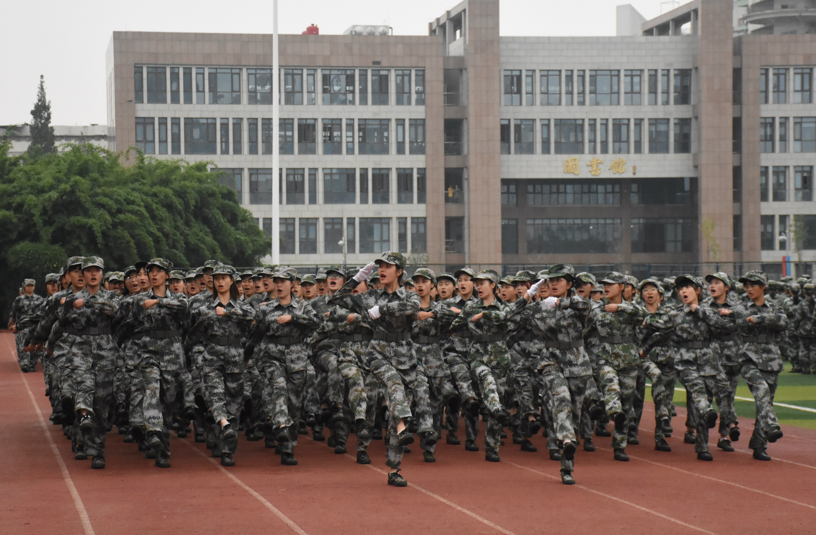 汇报表演随着《分列式进行曲》正式开始。分列式方阵队伍迈着整齐的步伐、喊着嘹亮的口号,依次走过检阅台,赢得了在场老师和同学的阵阵掌声;干净利落的匕首操,彰显着军营的英姿飒爽;刚劲有力的擒敌拳,挥洒的是不悔的青春;花式表演方队精心准备了排字“1949——2019” “祖国万岁”“70”等字样,并用手语操《国家》等节目祝福新中国70华诞;摔擒、应急棍、实战战术表演……汇演节目精彩纷呈,新生们意气风发、斗志昂扬,展现了我校学子乐观自信、奋发向上、砥砺前行的青春风采。