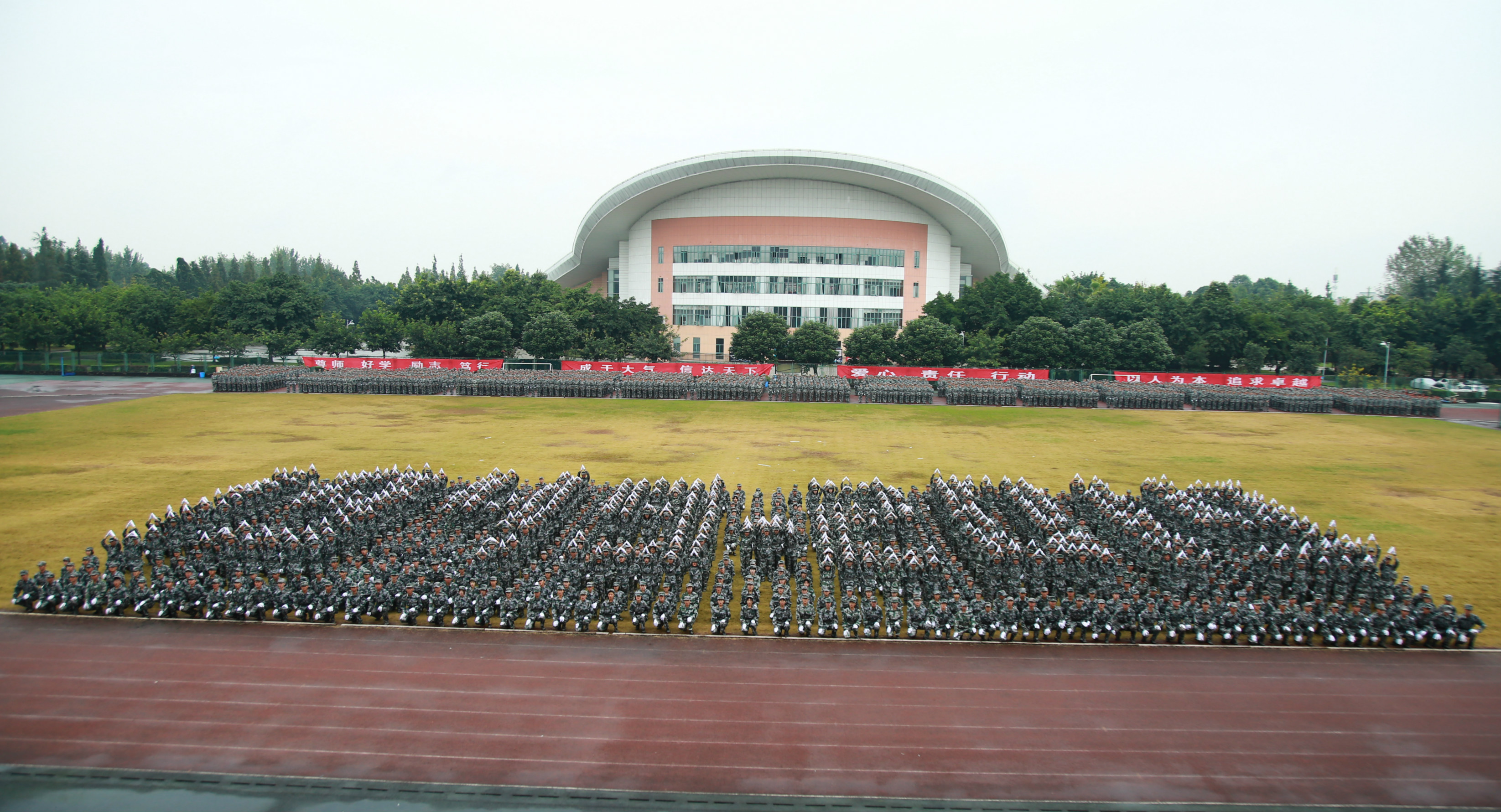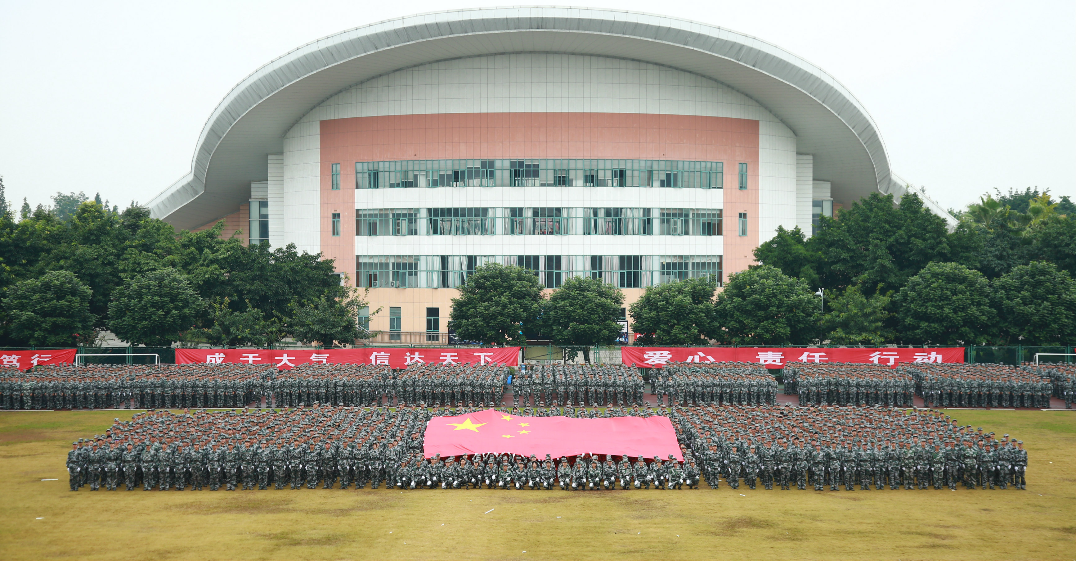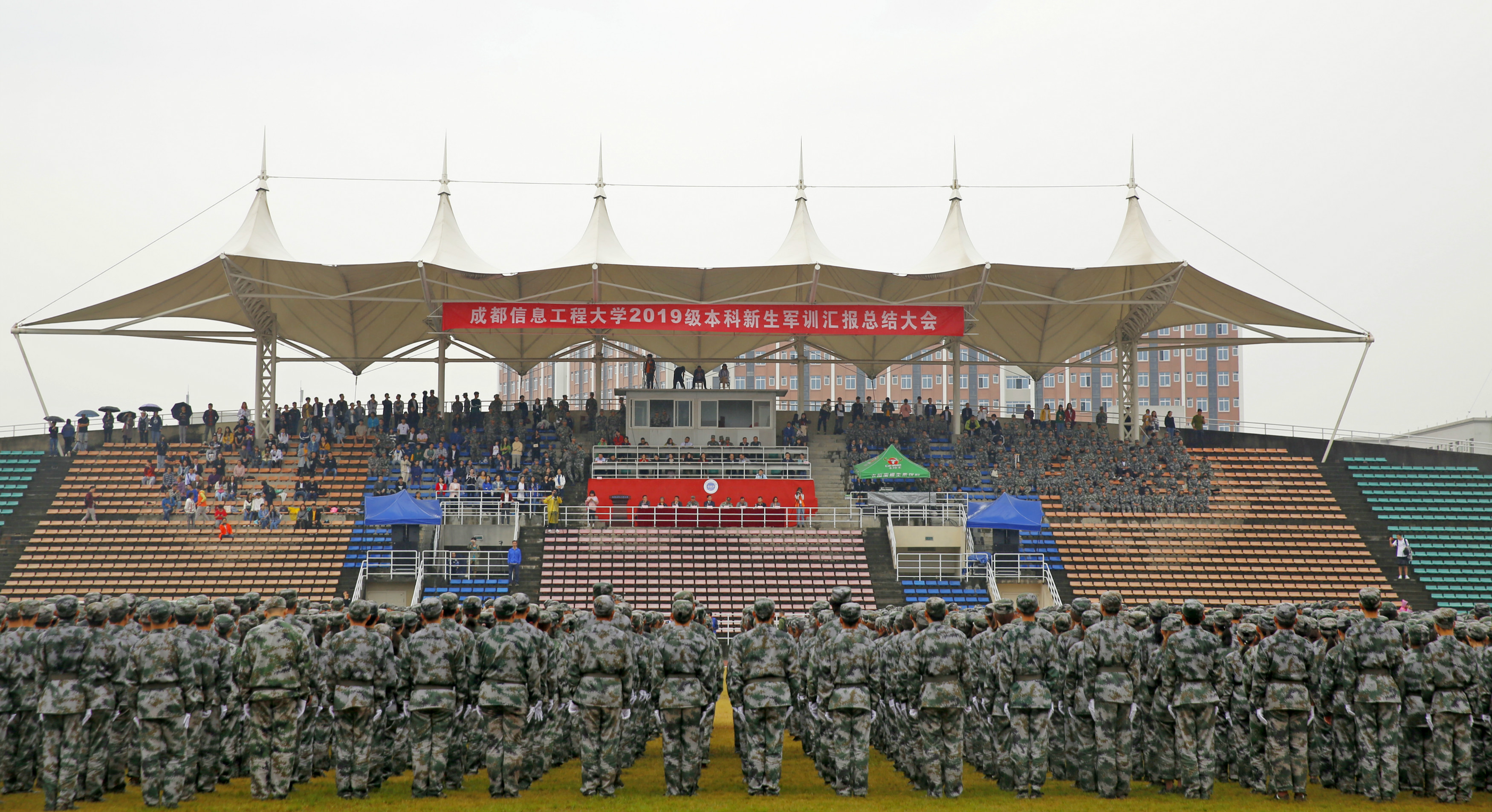 【本网讯】9月24日,学校分别在航空港校区和龙泉校区举行了2019级本科新生军训汇报总结大会。学校党委副书记马洪江,双流区人民武装部董部长,学校相关职能部门负责人、各学院党委书记(副书记),全体军训教官,2019级新生辅导员和全体新生等参加了总结大会。大会由学生工作处处长龚晓林主持。