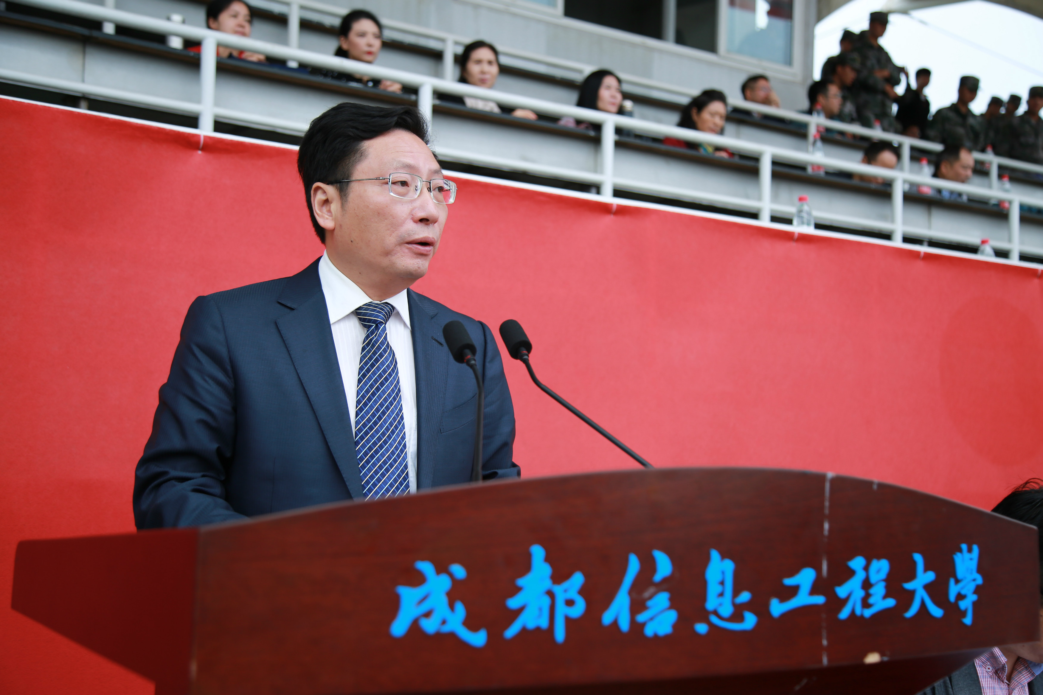 马洪江代表学校全体师生员工向承担本次军训任务的全体教官表示崇高的敬意,向投身今年军训工作的各位老师表示衷心的感谢,向刻苦训练、顽强拼搏的同学们表示热烈的祝贺。