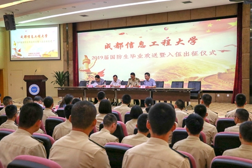 【本网讯】携笔从戎酬壮志,砺剑出征报家国。7月19日下午,学校在国际会议厅举行2019届国防生毕业欢送暨入伍出征仪式。学校党委常委、党委宣传部部长陶若铭,火箭军驻校选培办主任,学生工作处、招生就业处、保卫处、校团委负责人,毕业年级国防生培养学院党委书记、副书记,2019届毕业国防生参加了仪式。仪式由学生工作处副处长陈智勇主持。