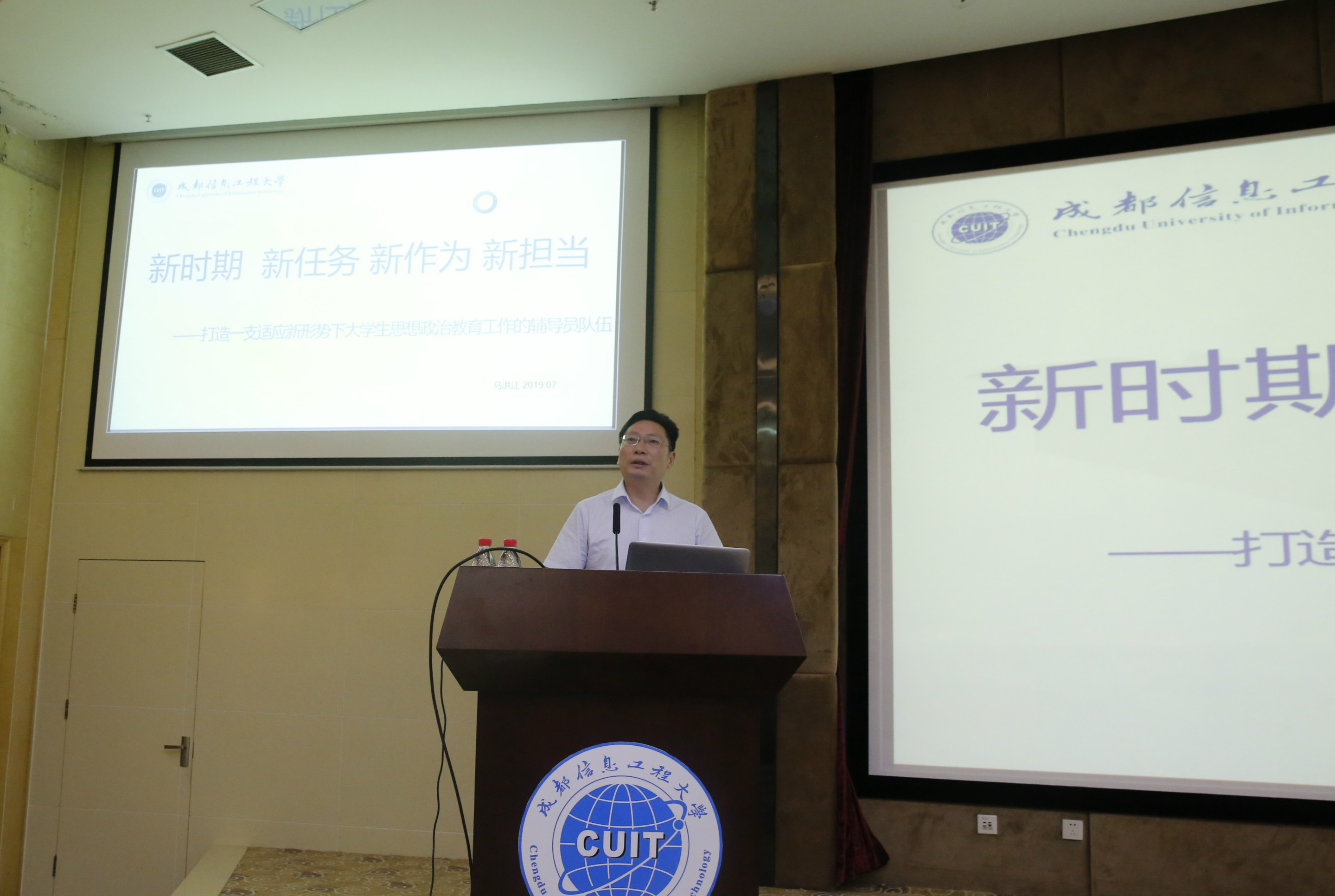 党委副书记马洪江作了《新时代 新使命 新作为 新担当——打造一支适应新形势下大学生思想政治教育工作的辅导员教师队伍》的工作报告。马洪江从辅导员的工作职责要求入手,阐述了辅导员在立德树人工作中的特殊重要性,分析了我校学生工作、大学生和辅导员队伍的基本特征和存在的问题,提出了加强辅导员队伍职业能力建设规划措施,即继续优化选聘流程,不断加强培养培训,树立正确态度观念,形成良好工作机制,促进队伍良性循环。