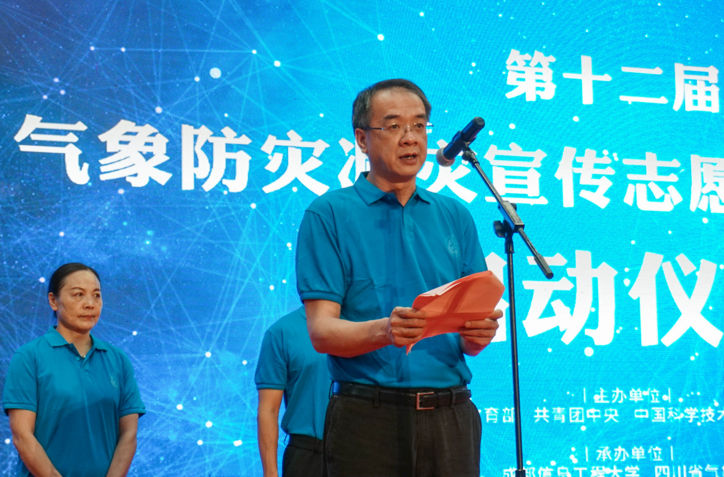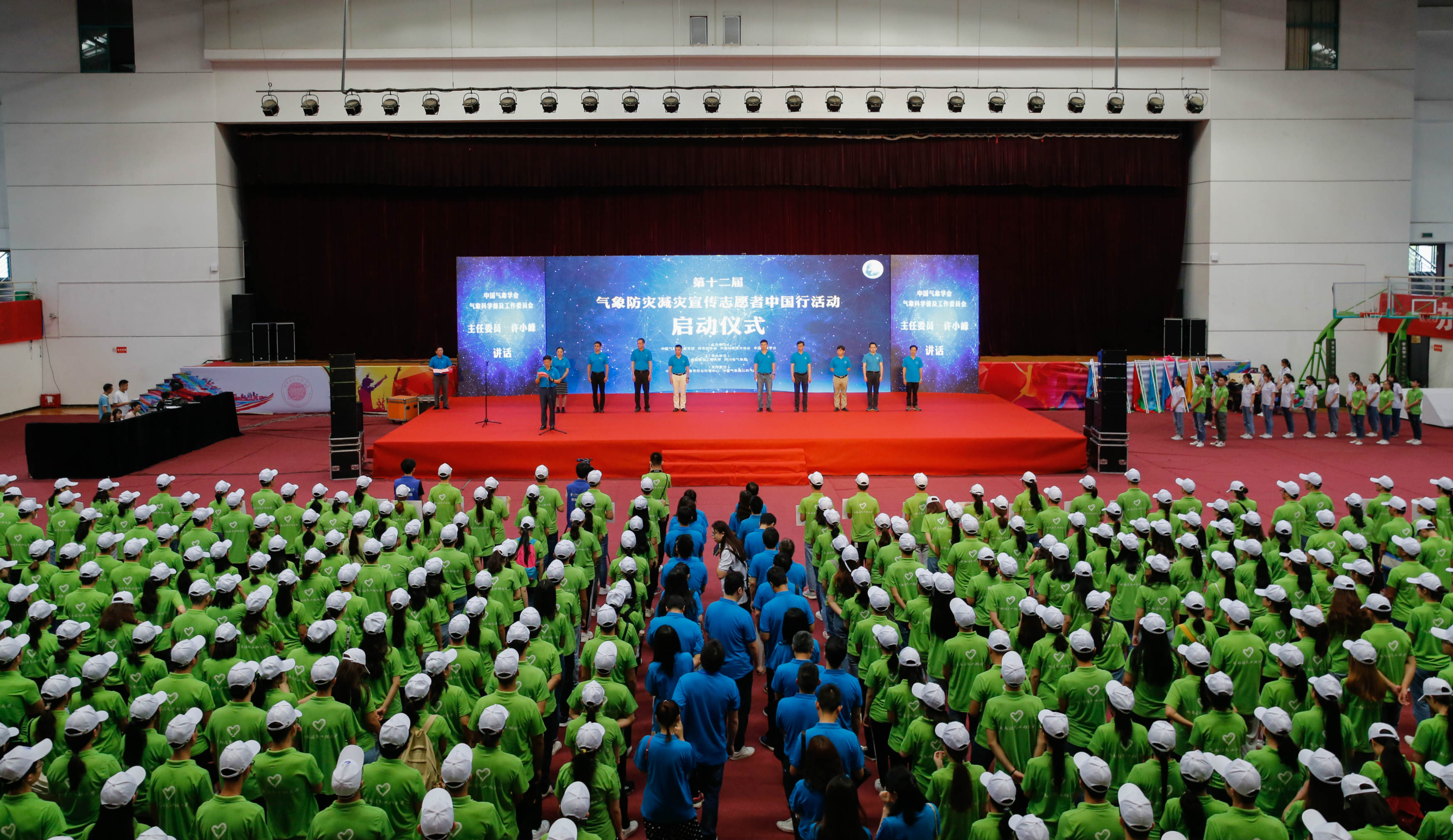 【本网讯】6月29日,由中国气象局、教育部、共青团中央、中国科学技术协会和中国气象学会主办,三亿网、四川省气象局承办,中国气象局公共气象服务中心、中国气象局宣传与科普中心支持,各省市气象局、气象学会、教育厅、团委、科协,南京信息工程大学等15所高校协办的第十二届“气象防灾减灾宣传志愿者中国行”活动启动仪式在学校航空港校区体育馆举行。