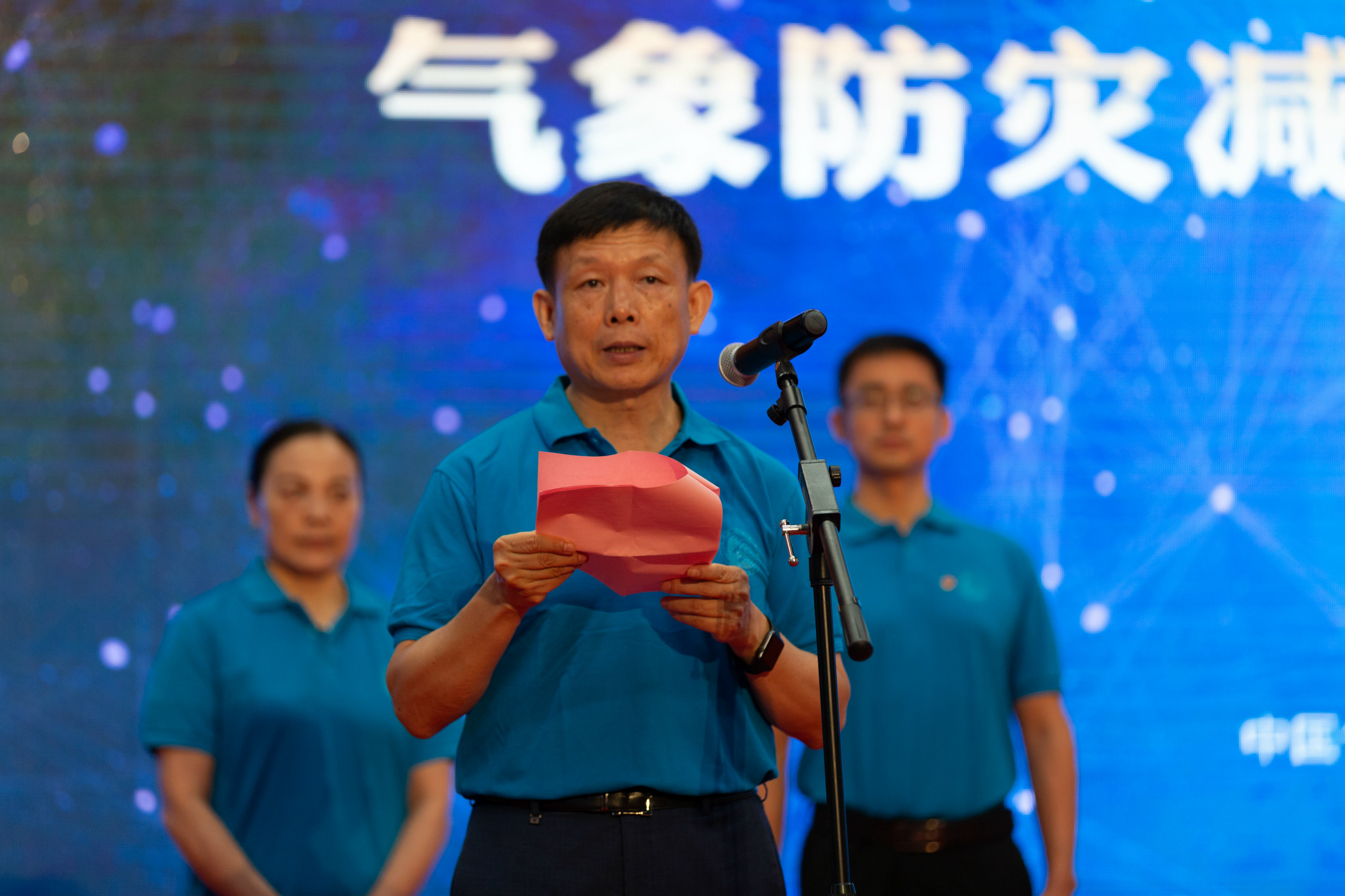 与会领导共同启动了第十二届“气象防灾减灾宣传志愿者中国行”活动。