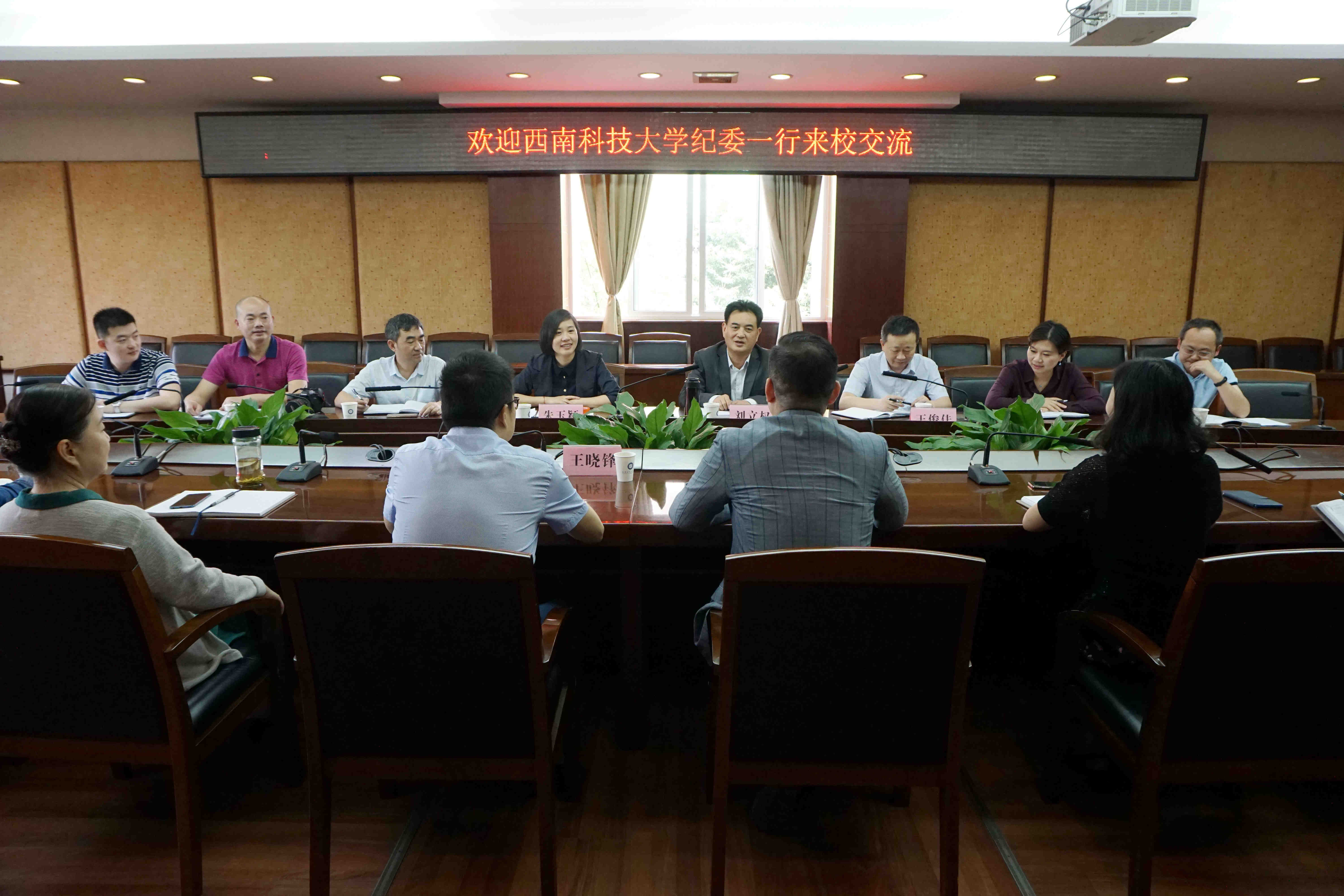 【本网讯】5月31日上午,省纪委监委驻西南科技大学纪检监察组组长,西南科技大学党委副书记、纪委书记刘立权一行到我校调研交流。座谈会在航空港校区行政楼第七会议室举行。省纪委监委驻校纪检监察组组长,学校党委副书记、纪委书记雷超,以及学校纪委办公室全体人员参加了调研座谈。
