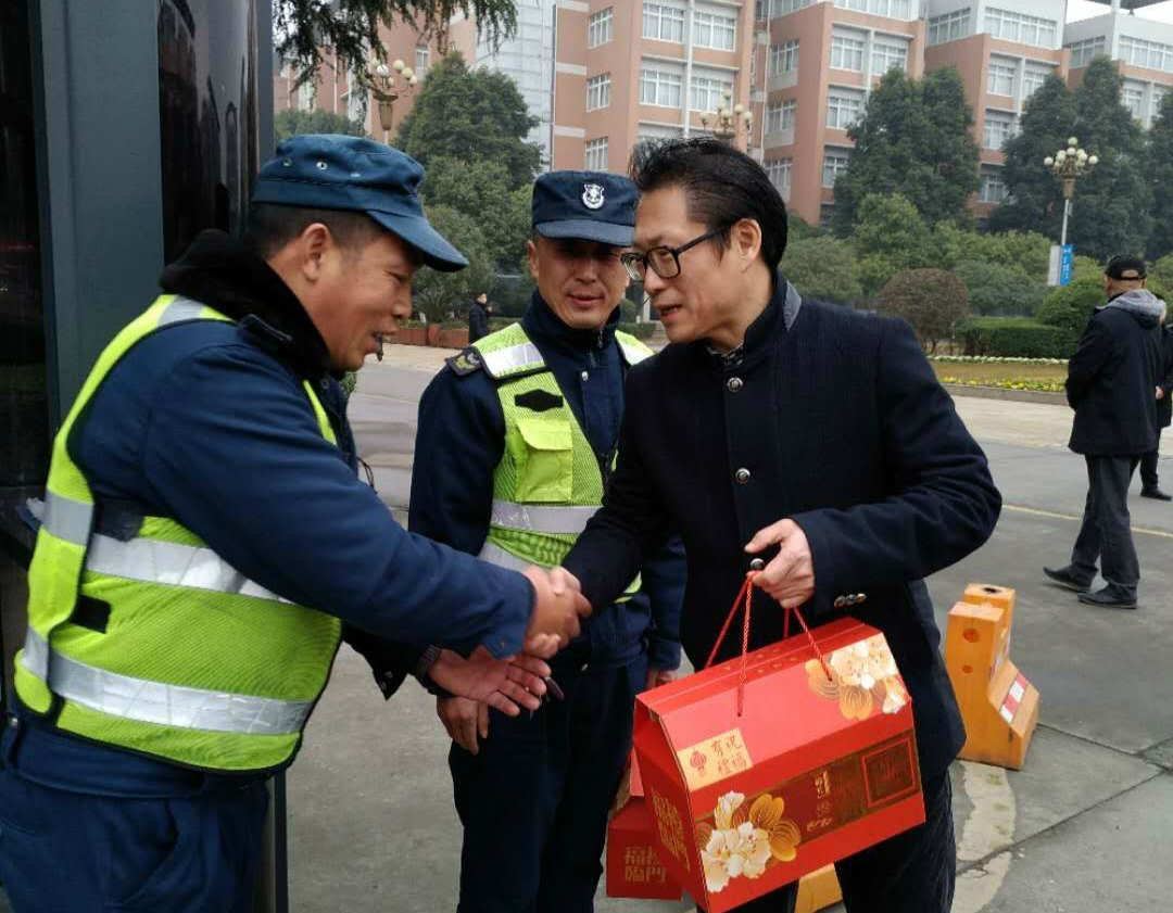 于世祥来到保卫处值班室、安保岗位,仔细询问寒假值班及安保情况,并对他们的辛勤工作给予充分肯定和由衷感谢,希望值班人员以高度的责任感做好值班工作,维护好寒假期间校园秩序,确保全校师生度过一个安全稳定的春节。
