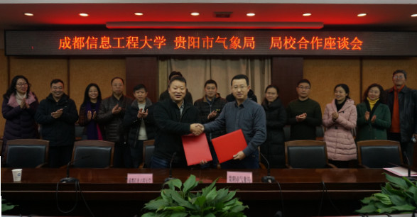 【本网讯】1月8日上午,贵阳市气象局局长牟克林一行5人来我校访问交流并签署局校合作协议。会议由科技处副处长汤志亚主持。