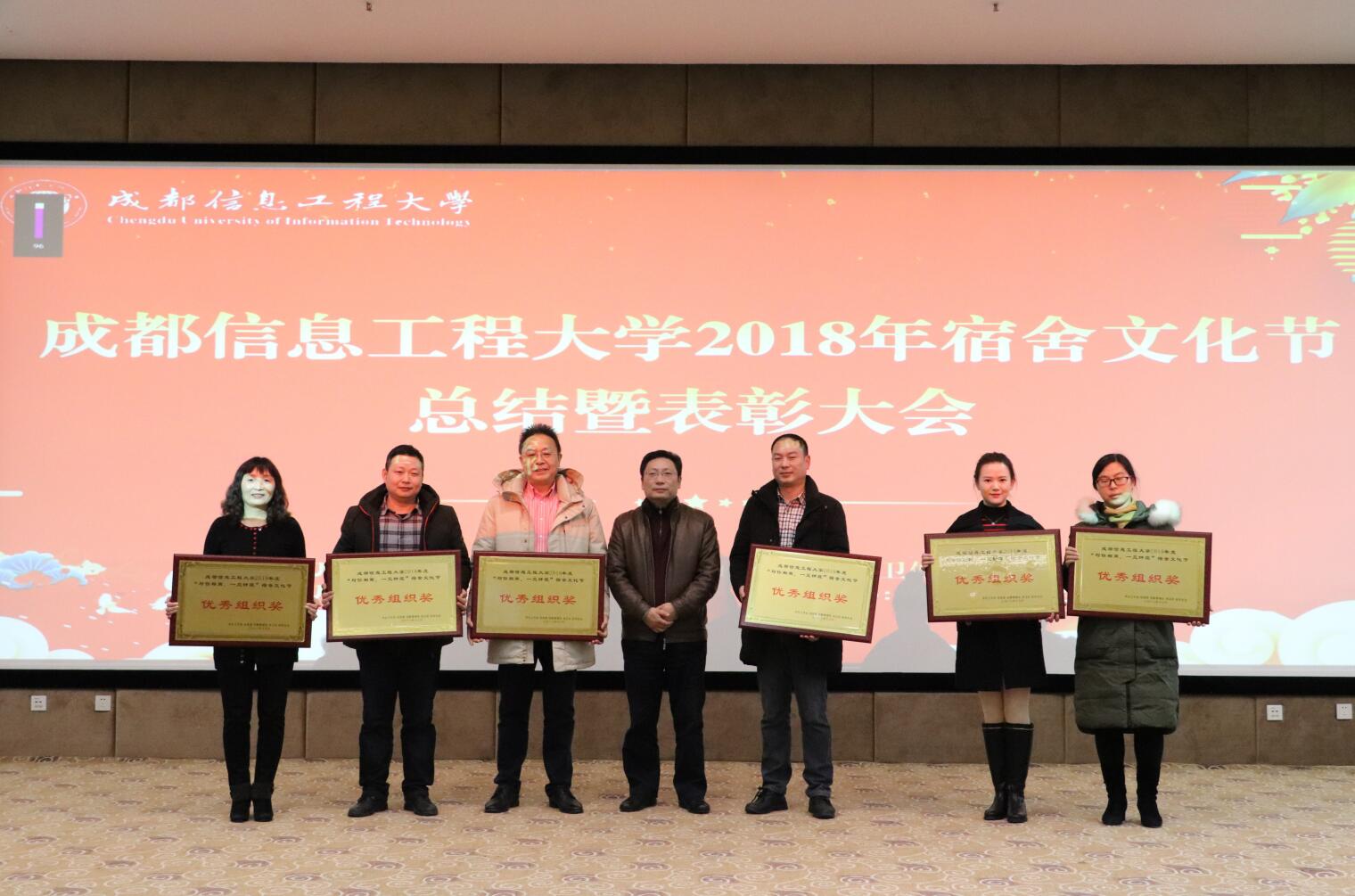 大会通过总结视频回顾了2018年宿舍文化节各项活动的开展情况以及活动成果。2018年宿舍文化节以“与你相‘寓’,一见钟‘寝’”为主题,历时近2月,内容包括寝室风采大赛(含寝室美化大赛和寝室文化作品征集大赛)、“寻寝记”第六季以及星级寝室评选。与往年相比,今年活动关注度更高、参与面更广,全校共有1362余间寝室、近10000人次参与寝室美化大赛,星级寝室评选覆盖全校所有寝室,“寻寝记”网络点赞活动阅读量近8万,微博相关话题阅读量突破300万,活动更是被中国青年网、微博校园、四川共青团等多家媒体相继报道。经过认真评审,今年的宿舍文化节共评选出5间“五星寝室”、12间“四星寝室”和24间“三星寝室”,3间寝室分别获得“寻寝记”第六季“最佳人气寝室”“最受欢迎寝室”称号,59间寝室分别获得寝室风采大赛一、二、三等奖以及优秀奖,电子工程学院、网络空间安全学院、软件工程学院、计算机学院、统计学院、物流学院等6个学院获得“优秀组织单位”称号,与会领导为活动中表现优秀的集体和个人颁发了奖状、奖牌。
