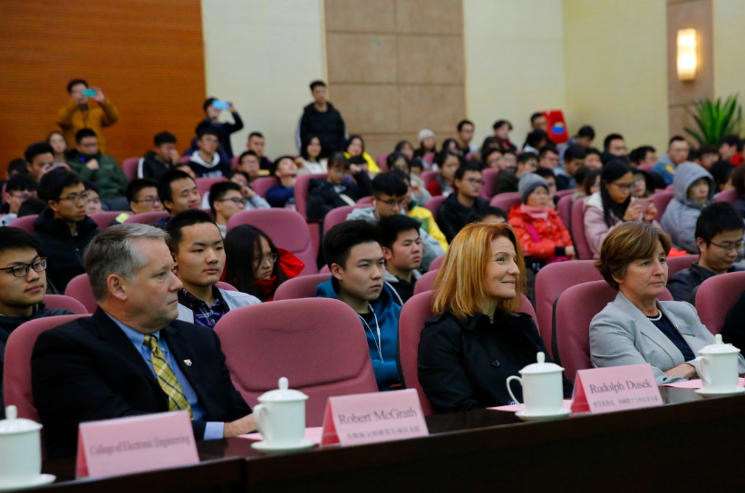 【本网讯】12月5日下午,学校2018年国际教育周开幕式在国际会议厅举行。美国新罕布什尔大学(University of New Hampshire)副校长Wayne Jones、大数据分析研究生项目主任Robert McGrath、哲学系教授Rudolph Dusek、健康与人类服务学院学前中心主任Lisa Ranfos、人文学院院长Michele Dillon、孔子学院院长Yige Wang,学校党委书记周激流,相关职能部门及各学院负责人等参加了开幕式。