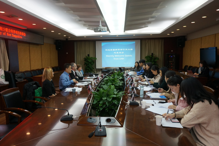 【本网讯】12月5日上午,我校与美国新罕布什尔大学(University of New Hampshire)博士合作项目、分析学硕士联合培养项目洽谈会在行政楼第七会议室举行。新罕布什尔大学副校长Wayne Jones、健康与人类服务学院学前中心主任Lisa Ranfos、人文学院院长Michele Dillon、孔子学院院长Yige Wang,我校国际交流与合作处处长何嘉、研究生处副处长唐婷婷、相关学院负责人及教师参加了会议。