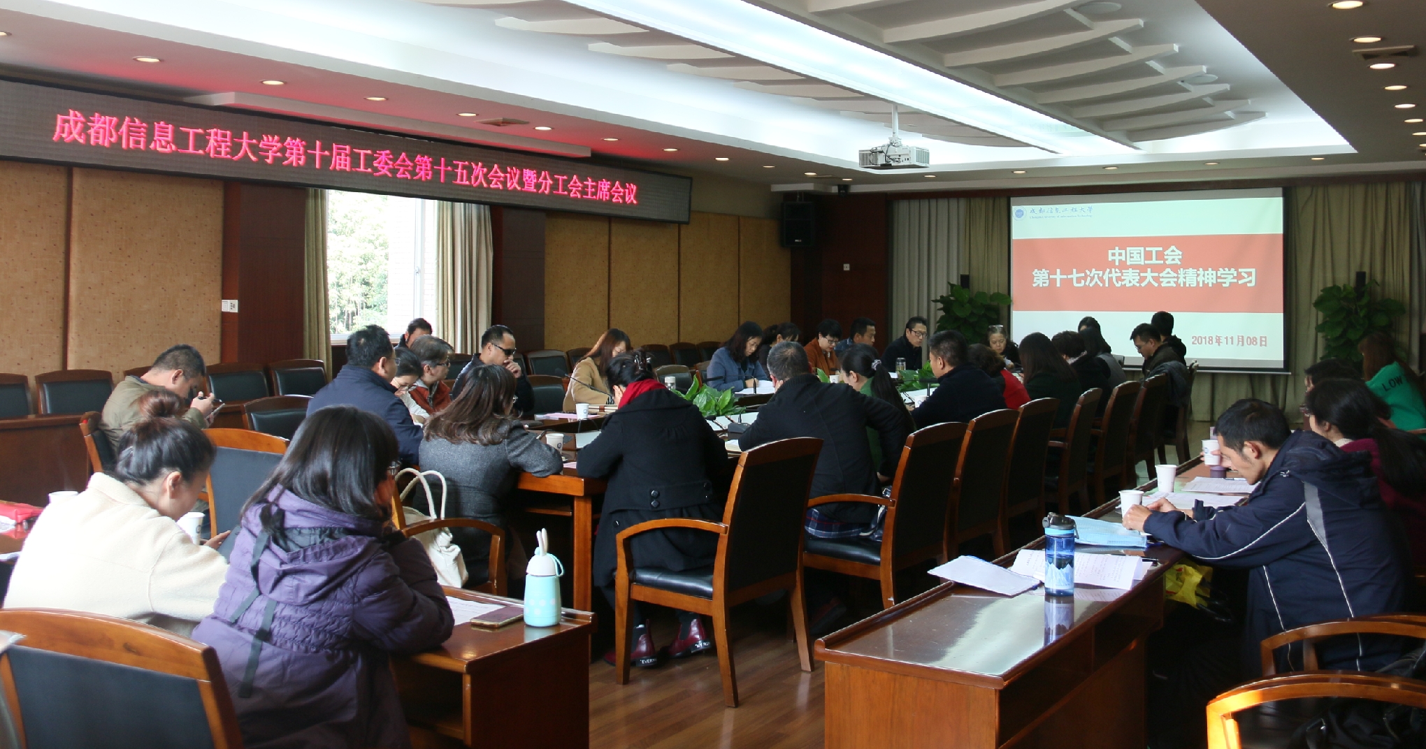 于世祥带领全体参会人员学习了中国工会第十七次全国代表大会会议精神以及习近平总书记在同全国总工会新一届领导班子成员集体谈话时的重要讲话精神。他对中国工会第十七次全国代表大会的会议概况、会议内容、会议任务、会议成果以及《中国工会章程(修正案)》的决议做了介绍,重点对王东明主席所作的大会工作报告做了详细解读。他讲到,习近平总书记的讲话明确了工会工作的根本宗旨、前进方向和目标任务,是新时代我国工会工作的行动指南和根本遵循。学校工委会委员和分工会主席,是学校工会工作的重要力量,要认真学习、深入领会习近平总书记的讲话精神,进一步提升自己的理论水平和业务能力。