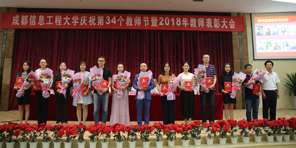 余敏明宣读了表彰文件:李国平获得“全国气象教学名师”荣誉称号、黄萍获得“四川省优秀教师”荣誉称号、王式功等4名教师入选“四川省学术和技术带头人”、吴震等5名教师入选“四川省有突出贡献的优秀专家”、李贺等3名教师入选四川省人才引进计划、14个教学团队获得省级教学成果获奖、王永前等20名教师入选“四川省学术和技术带头人后备人选”、陈科艺等10名教师获得第五届“青年教师教学奖”、胡茶根等18名教师分获学校第九届青年教师教学竞赛一、二、三等奖。