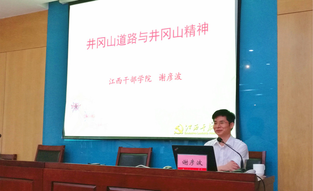 开班仪式后,谢彦波为全体学员作了“井冈山道路与井冈山精神”的专题报告。简要回顾了近代以来,中国无数先贤探索救国复兴的伟大道路所开展的一系列斗争,用大量的史实向学员再次阐明“井冈山道路”是挽救民族危亡的唯一出路,也是历史的必然选择。道路问题关系党的事业兴衰成败,关系民族复兴伟业。正是有了“井冈山道路”,革命才从这里走向成功。谢彦波分别以“跃上井冈旗帜新”和“星星之火在燎原”为引,讲述了井冈山道路由探索到发展再到最后被确立的艰难历程,指出了坚定“四个自信”,特别是道路自信的重要性。