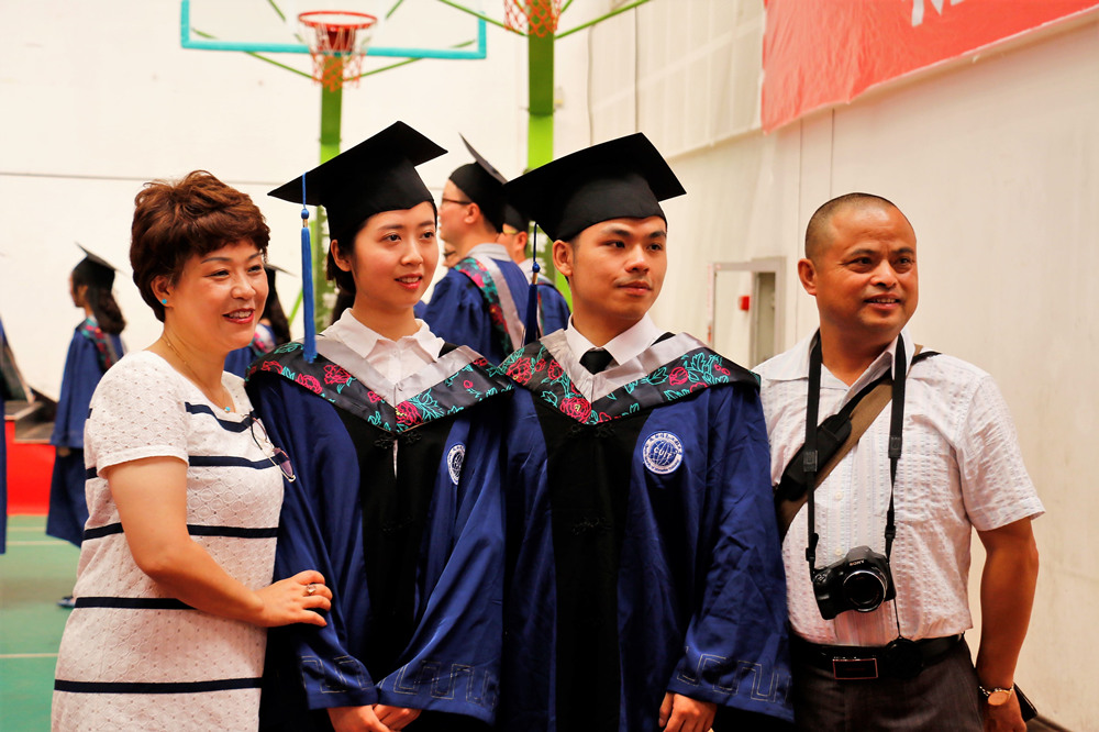 学校党委书记周激流,校长余敏明同时为全体硕士研究生、省级优秀本科毕业生授位。毕业生们身着学士服庄严走上台依次接受师者的拨穗与真切的祝福,走下台后与至亲好友热烈拥抱,合影留念。