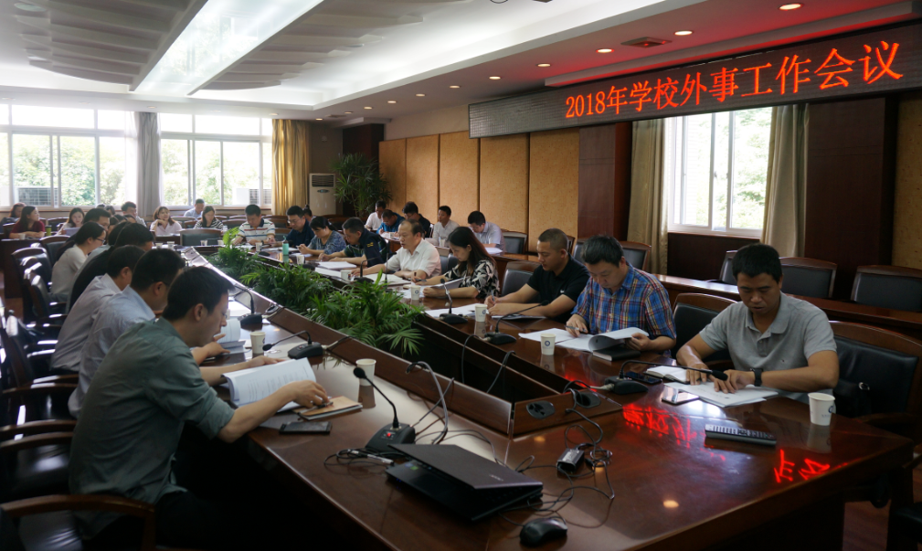 【本网讯】6月8日上午,2018年学校外事工作会议在航空港校区行政楼第七会议室召开。副校长何建新,国际交流与合作处、学生工作处、教务处、研究生处、科技处、教师教学发展与评估中心负责人,各学院主管外事负责人、国际干事及外事联络员参加会议。会议由国际交流与合作处处长何嘉主持。