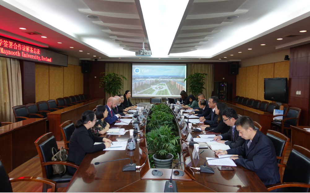 余敏明对Philip Nolan一行的到来表示热烈欢迎,并介绍了学校基本情况以及师资队伍、学生培养、教育教学、科学研究等方面国际化发展的现状。Philip Nolan介绍了国立爱尔兰梅努斯大学基本情况及合作意向。他表示,两校在计算机科学、电子工程、大气科学、商科等方面有广泛的共同点,梅努斯大学有意愿与我校在教师、学生、科研等方面开展进一步合作。何建新提到,两校可以在更多专业方面拓宽合作领域,包括计算机、电子、通信、智能研究等方面,学校将创造条件鼓励教师赴梅努斯大学开展科研合作,以教师合作促进学生合作。