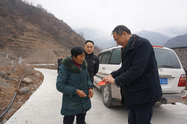 余敏明向蒲麦地村贫困户发放春节慰问金