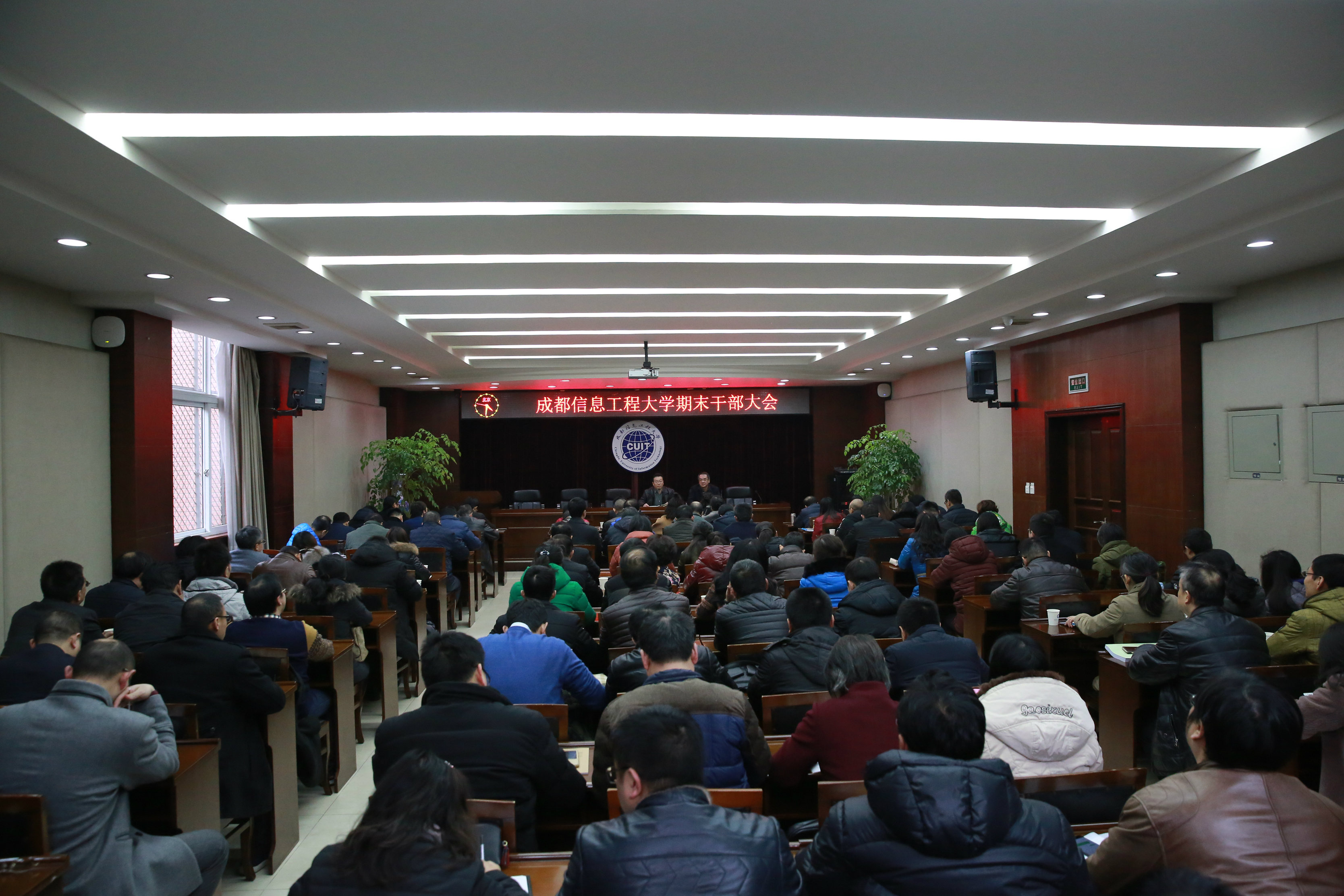 【本网讯】1月18日下午,学校在航空港校区行政楼一会议室召开期末干部大会。全体校领导、处级干部参加了会议。校长余敏明主持会议。