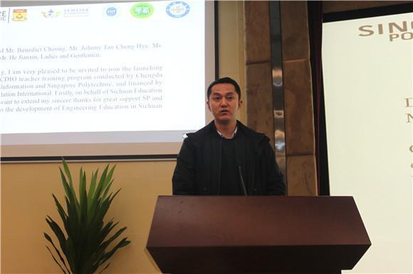 Johnny Tan Cheng Hye回顾了该项目的发展历程,介绍了CDIO如何提升学生创新能力。他指出,四川已经成为中国最具有创新力的区域之一,并正在进行不断的创新改革。该项目是新加坡理工学院在中国开展的第一次合作,希望通过CDIO工程教育改革,三所合作高校能为四川在创新领域培养更多的人才,一起为中国的青年学生开创美好未来。