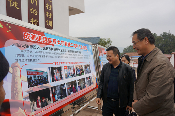 余敏明查看我校帮扶二龙村工作展板