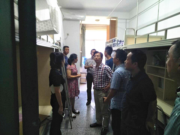肖月强仔细查看每个环节的保障情况,向有关部门负责人详细了解相关工作进展,并就存在的问题与困难进行了交流指导。走访期间,肖月强深入新生宿舍,针对床上用品质量、宿舍环境卫生、消防安全保障等方面进行了细致地询问,并与新生及家长进行交流,倾听他们的意见,将合理的建议落到实处。