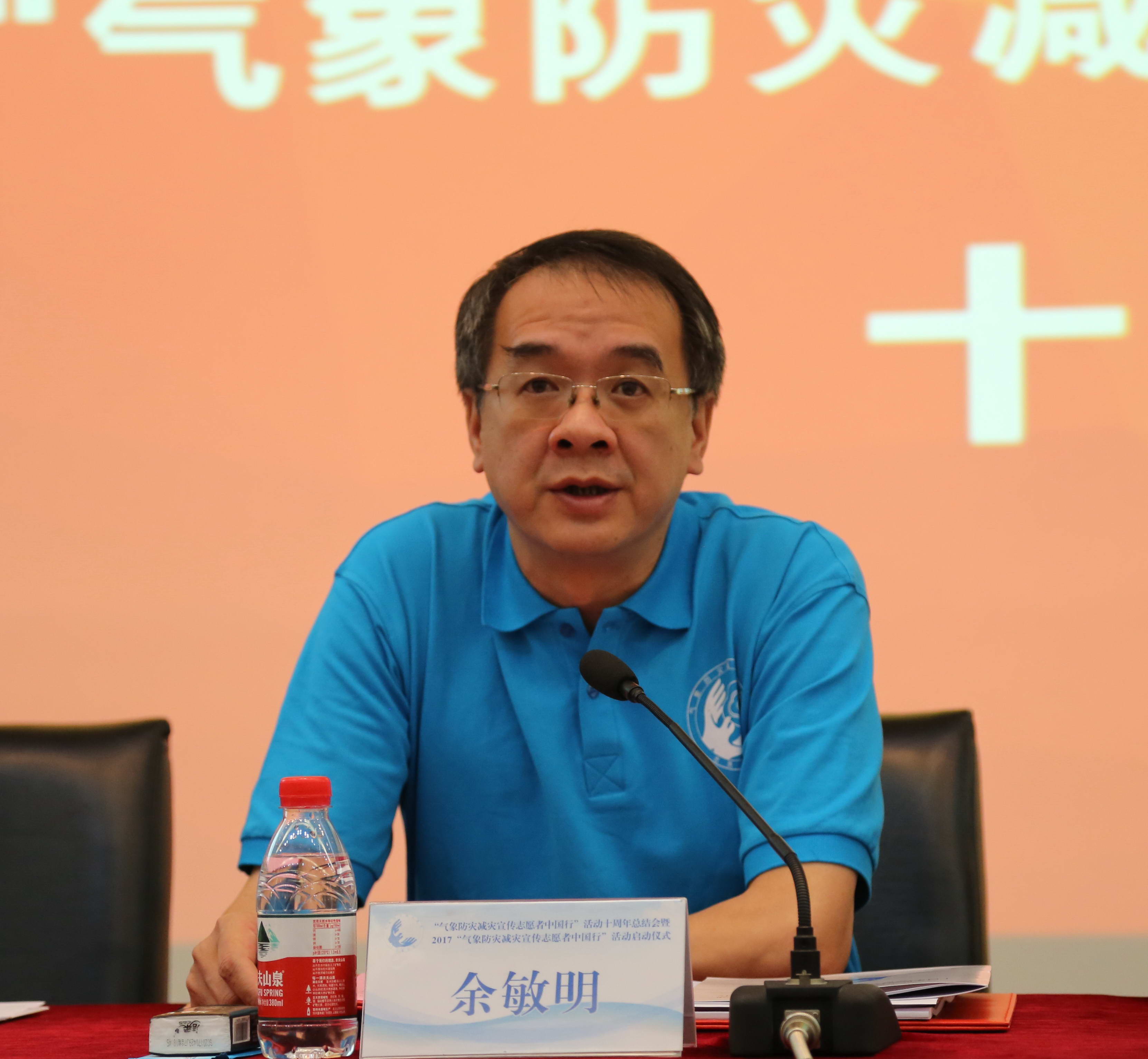 我校校长余敏明代表承办单位在总结会上致辞。他希望全体参与单位和志愿者们坚守初心再出发,以十周年为契机,共同商讨成立“气象防灾减灾宣传志愿者联盟”事宜,积极推动“气象防灾减灾志愿者中国行”下一阶段的发展,继续以高度的责任感、使命感和紧迫感,积极营造良好的氛围和环境,不断加强社会各界的协同创新与合作,创造性地开展工作,为气象防灾减灾事业和气象现代化事业搭建良好的合作发展平台。他表示,学校一定会全力以赴支持气象防灾减灾的各项工作,不忘初心、勇于担当,努力为国家气象事业发展和气象防灾减灾工作做出更大贡献。