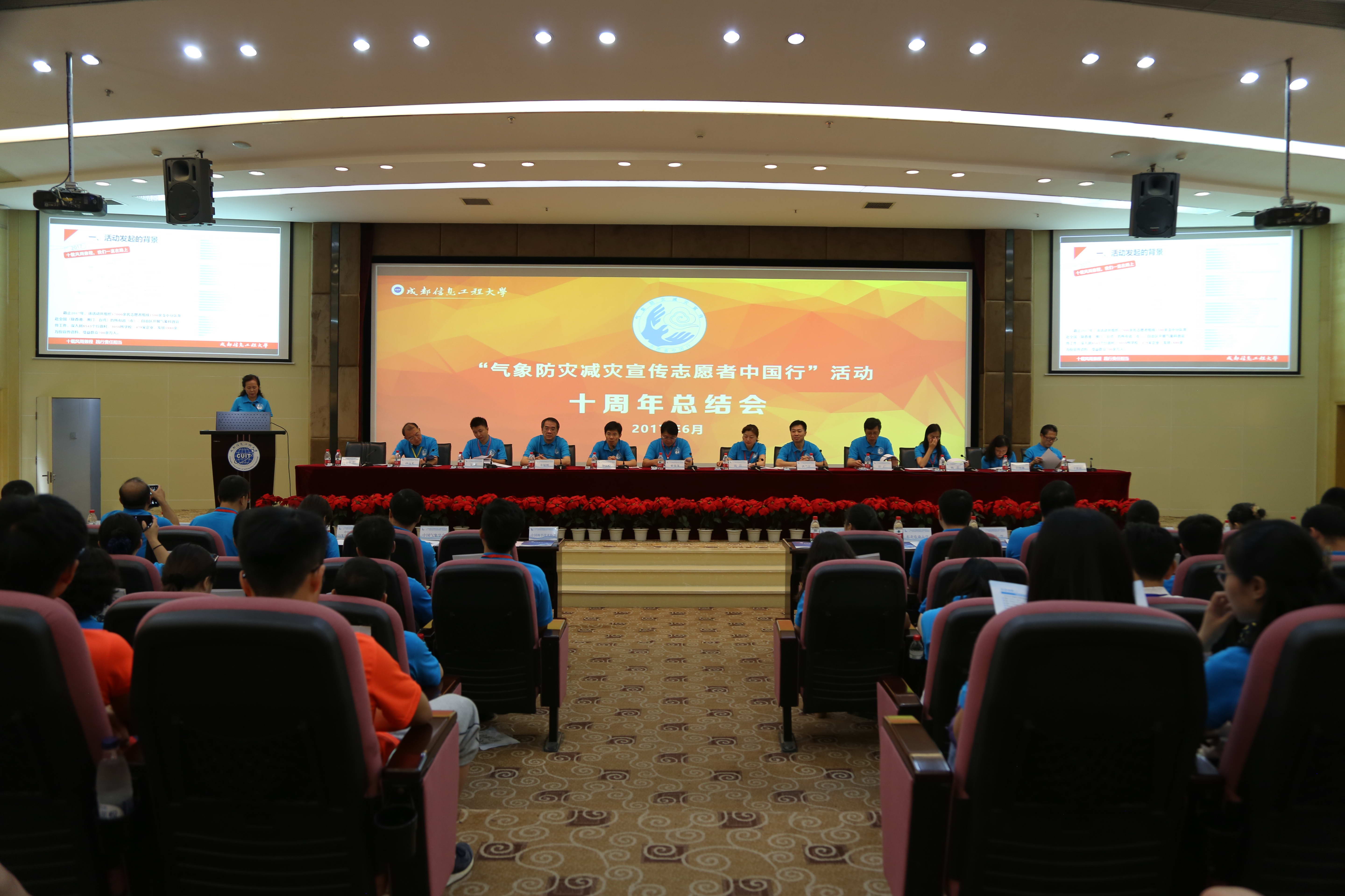 我校党委副书记敬枫蓉代表承办单位作“气象防灾减灾宣传志愿者中国行”活动十周年总结发言。她说,自2007 年起,学校结合自身专业特色、学科优势和社会需求,发动广大青年学生在全国持续开展气象科普志愿服务工作。10年来,活动扩展至12所高校,范围扩展至除港澳台外的全国各省、市、自治区的农村、厂矿、中小学校、社区。十年间,科普宣传工作不断深入,实践育人成效不断增强,气象科普作品不断丰富,品牌影响力不断扩大,活动还成功纳入《国家气象灾害防御规划(2009-2020年)》和中国科协事业发展“十二五”“十三五”规划,曾先后荣获2009年中国气象局创新工作特别奖,2011年中国地方政府创新奖特别奖。