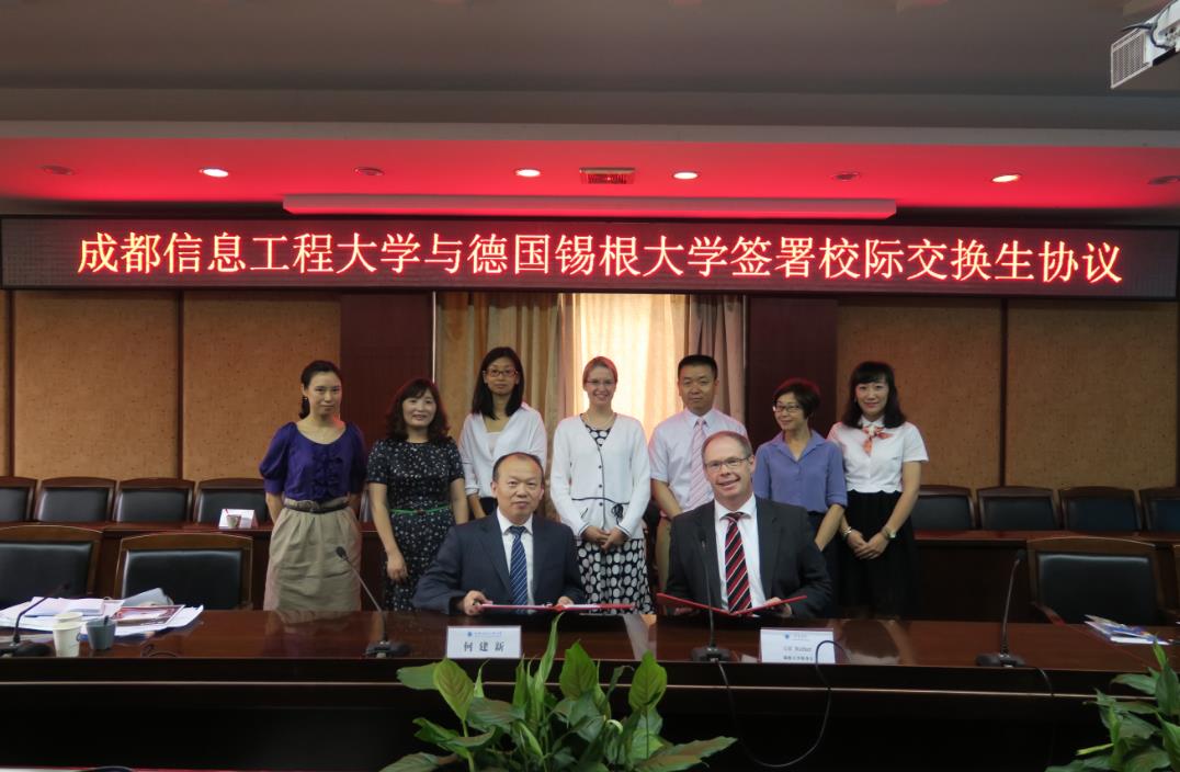 会后,我校与德国锡根大学签订《三亿网与德国锡根大学交换生协议》。锡根大学代表团一行前往学校无人车设计实验室和大气探测博物馆进行参观。