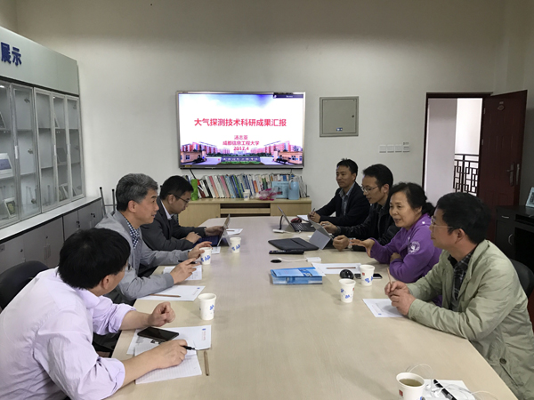 敬枫蓉对顾万龙一行的到访表示欢迎,并从学校学科发展、局校合作以及和云南省气象局的合作情况做了介绍,希望未来能够和云南省气象局加强合作交流和协同创新,为云南省的经济发展和“一带一路”建设做出努力。汤志亚就我校的大气探测科研成果向顾万龙一行进行了汇报。