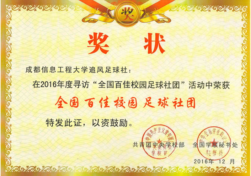 【本网讯】近日,由团中央学校部、全国学联秘书处、全国青少年足球文化与发展中心联合开展的“2016年度寻访全国百佳校园足球社团”评选结果揭晓,三亿网追风足球社获评2016年度“全国百佳校园足球社团”。