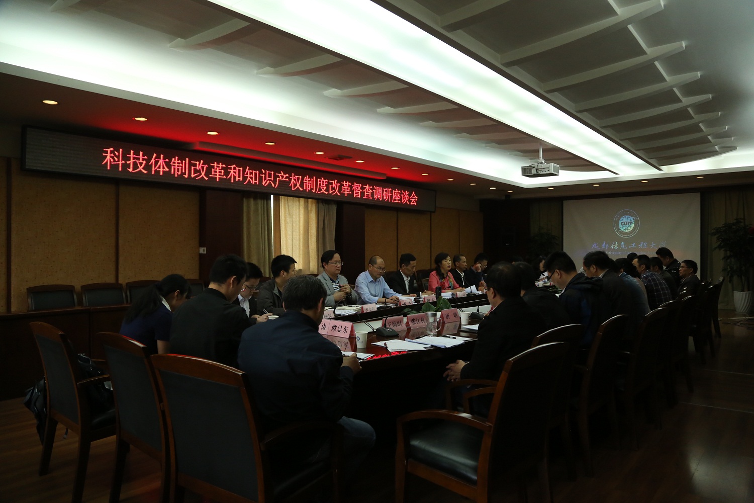 【本网讯】4月24日下午,省知识产权局局长谢商华、省国税局副巡视员周定奎、省交通运输厅副巡视员蒲宜仙、省知识产权局副局长杨早林等一行10人来我校对科技体制改革和知识产权制度改革进行督查调研。学校副校长贺盛瑜主持调研座谈会。