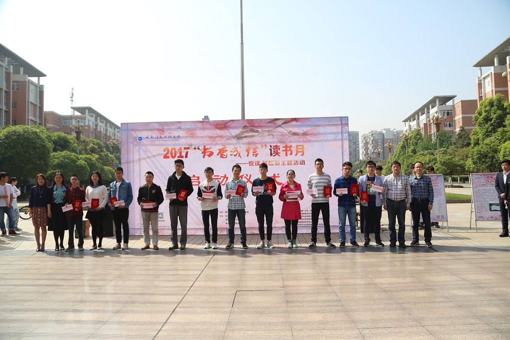 【本网讯】4月18日,学校2017年“书香成信”读书月活动启动仪式在IT广场隆重举行。学校副校长于世祥、贺盛瑜,宣传统战部、学生工作处、图书馆、校团委相关负责人,学院总支书记(副)书记,“2017年读者之星”及师生、读者代表参加了启动仪式。