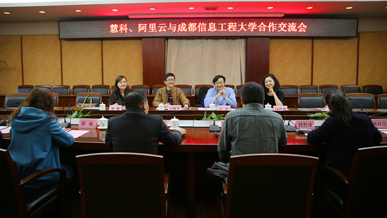 【本网讯】3月6日,我校与慧科、阿里云合作交流会在行政楼第七会议室举行。慧科集团总裁王浩、副总裁刘媞,战略合作总监沙严君,阿里云教育事业部总经理王晓斐及相关部门领导,我校校长周激流,副校长何建新,党政办、教务处、研究生处、科技处等相关部门负责人参加了合作交流会。会议由周激流主持。