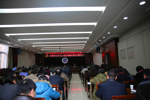 【本网讯】12月22日下午,学校党委中心(扩大)组党风廉政建设专题报告会在行政楼第一会议室举行。会议特邀四川省纪委监察厅第一纪检监察室主任陈飞作题为“坚持挺纪在前运用四种形态”的专题报告。全体处级以上领导干部参加学习,报告会由党委副书记、纪委书记倪鸣主持。