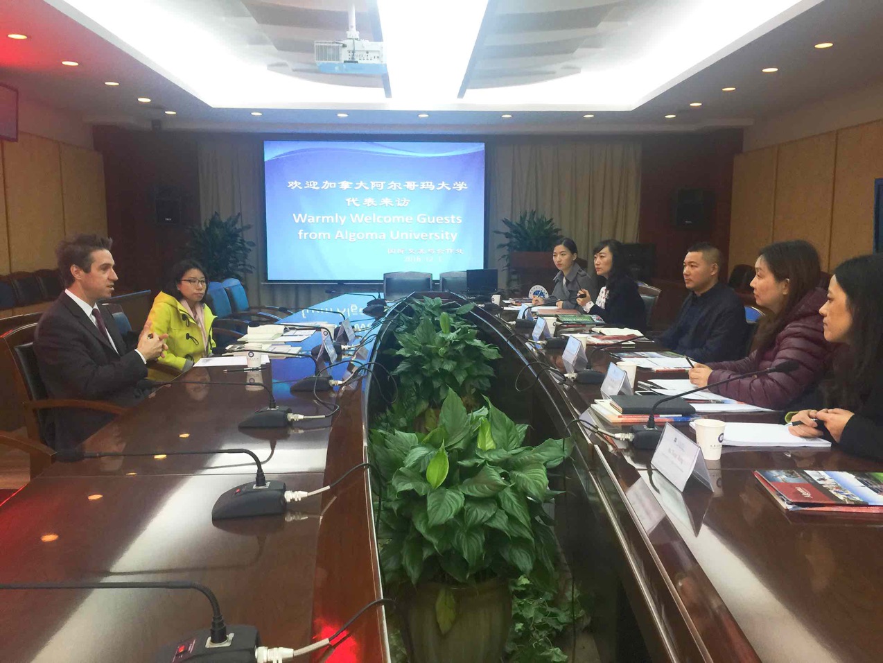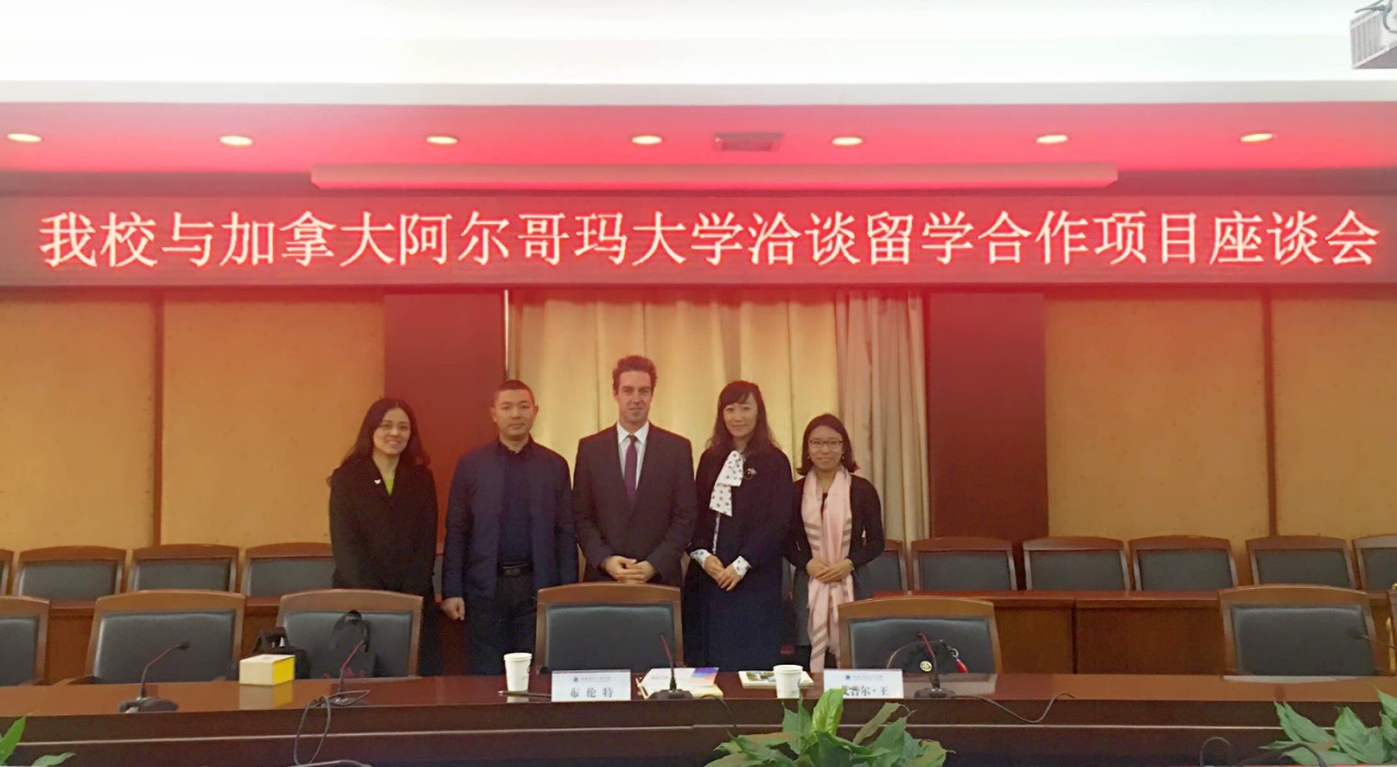 【本网讯】12月1日,加拿大阿尔哥玛大学(Algoma university)国际处主任Brent Krmpotich、国际处代表April Wang一行来我校交流访问。国际交流与合作处处长段黔冰与来访客人在第七会议室进行座谈,参加座谈的有:计算机学院院长何嘉、国际交流与合作处副处长刘伟、计算机学院副教授汤蓉、国际交流与合作处科长盖秋艳。会议由段黔冰主持。