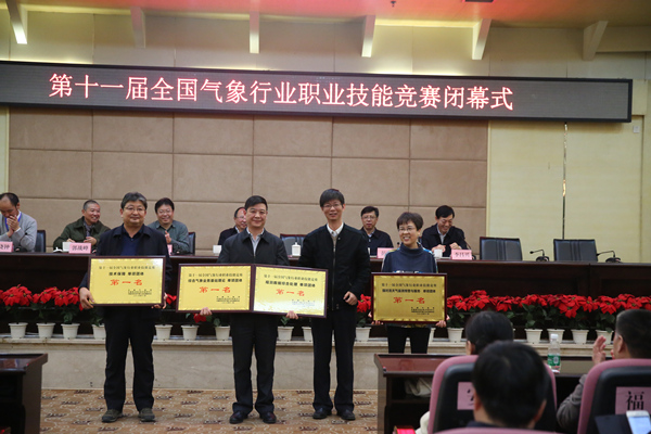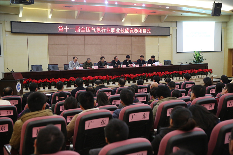 【本网讯】11月30日上午,第十一届全国气象行业职业技能竞赛闭幕式在我校隆重举行。中国气象局副局长于新文、综合观测司司长王劲松、直属机关党委工会主席郭战峰、探测中心副主任曹晓钟,四川省气象局局长彭广,我校校长周激流、党委副书记敬枫蓉、副校长何建新以及全体参赛代表队出席闭幕式。闭幕式由中国气象局综合观测司副司长李昌兴主持。