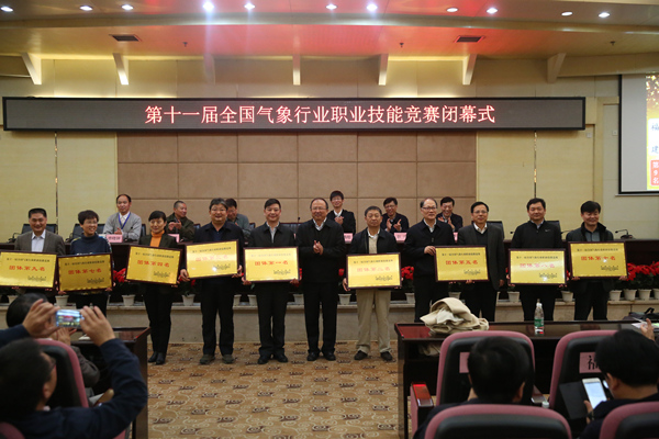 王劲松宣布获奖名单。来自河北省代表队的孟丽红综合能力突出,获得个人全能一等奖,来自河北省代表队的郭义涛和来自山东省代表队的干兆江获得个人全能二等奖;河北省代表队、云南省代表队和内蒙古代表队分获优秀团体奖前三名;非气象部门行业选手成绩最优者为来自新疆生产建设兵团气象局的曾桂婷;云南省代表队较上届竞赛进步了17名,摘得团体最快进步奖。