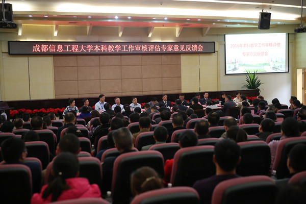 【本网讯】11月17日,本科教学工作审核评估专家意见反馈会在我校航空港校区国际会议厅召开。教育部评估中心副主任周爱军,教育部本科教学工作审核评估专家组全体成员,教育部评估中心院校评估处副处长王红,四川省委教育工委委员、教育厅党组成员李光华,四川省教育厅高教处处长杨亚培、副处长宋亚兰,我校全体校领导,中层干部,各教学单位教研室主任、实验室主任、教务办公室主任、学生工作办公室主任,四川省教育厅观摩人员参加了会议。会议由专家组组长、南京大学副校长谈哲敏教授主持。