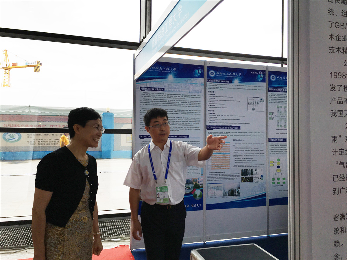 9月11日气象装备与服务开幕式前,中国气象局矫梅燕副局长亲赴各个参展单位指导工作,在听取了我校的科研成果介绍后,指出我校王世功教授开发的国家人口与健康科学数据共享平台是应用气象服务的优秀示例。