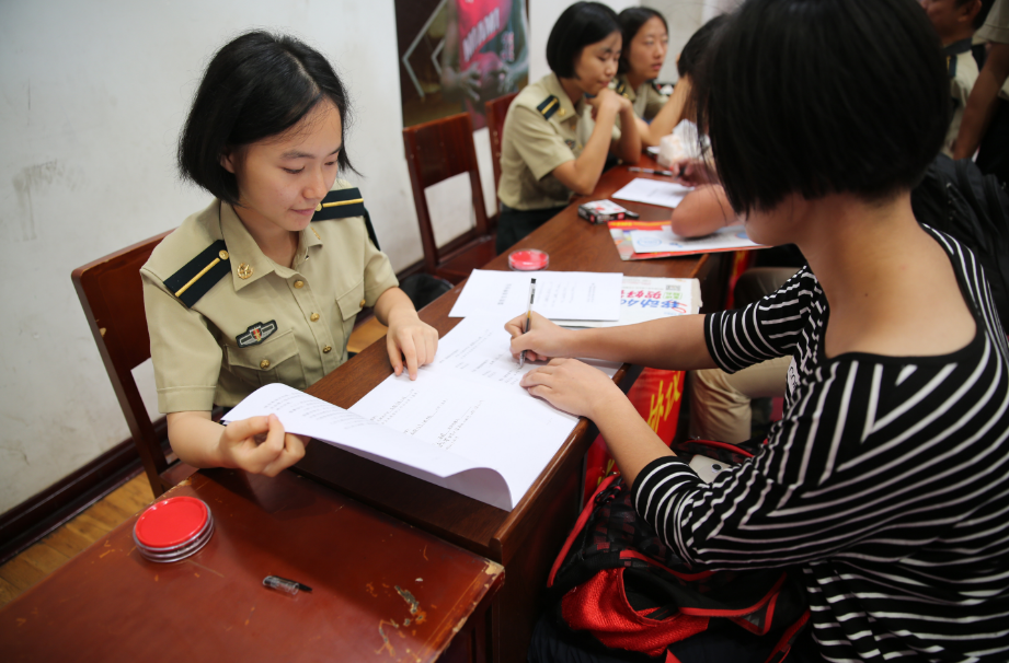 在报到现场,除了办理入学手续外,学校为新生及家长提供了休息区、饮水点、志愿服务点,还专门设置了困难学生绿色通道。为了“不让每一位学生因贫困而辍学”,学校还为贫困学生提供了日常用品、军训服装和商业综合保险等减免政策。