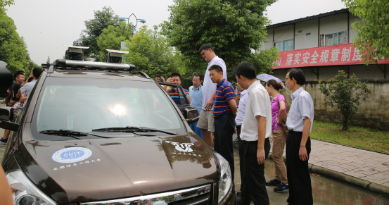 闭幕式结束后,赖廷谦陪同姚明先生参观了我校大气观测场。随后,我校控制工程学院蒋涛副院长为姚明先生边讲解边演示最新的科研成果“无人驾驶汽车”项目。