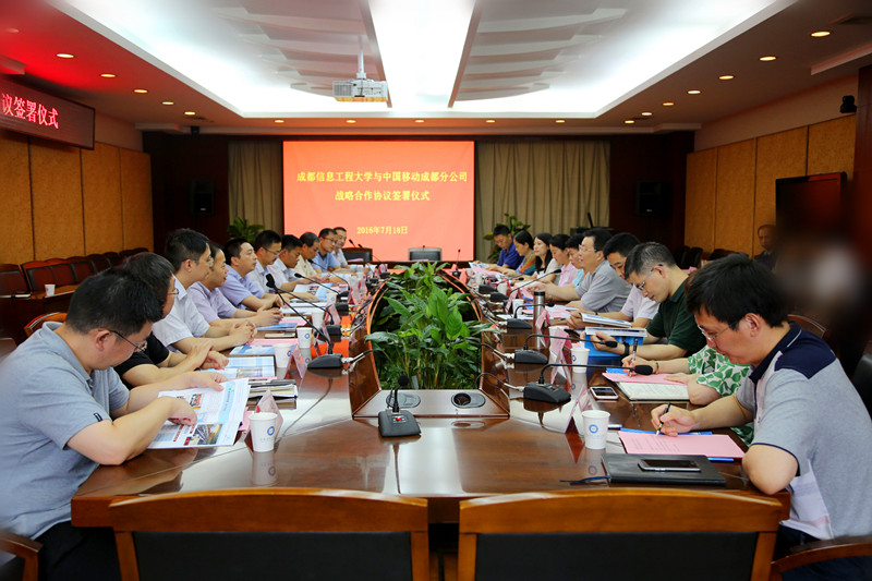 【本网讯】7月18日下午,我校与中国移动成都分公司战略合作签约仪式在行政楼七会议室举行。中国移动四川省分公司副总经理刘耕、中国移动成都公司总经理夏泳及相关部门领导,我校校长周激流,副校长贺盛瑜,党政办、宣传部、学生工作处、计划财务处、招生就业处、资产处、后勤管理处、保卫处、校团委以及信息中心等相关部门负责人出席了签约仪式,签约仪式由贺盛瑜主持。