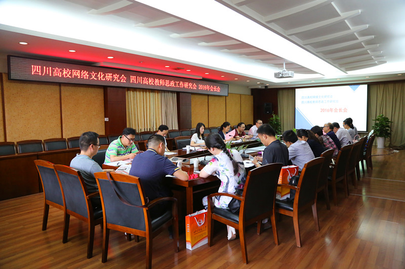 【本网讯】2016年6月24日下午,四川高校网络文化研究会、四川高校教师思政工作研究会2016年会长会在我校航空港校区行政楼七会议室召开。来自全省18所高校的四川高校网络文化研究会、四川高校教师思政工作研究会会长、副会长单位代表参加了会议。会议由四川高校网络文化研究会会长、我校党委副书记敬枫蓉主持。