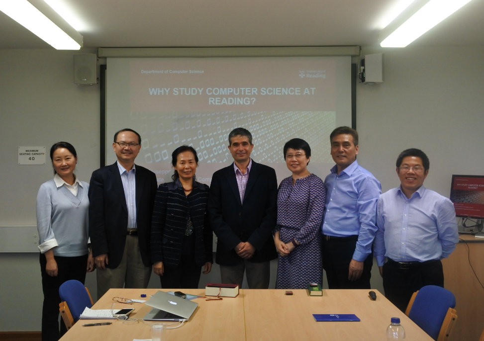 随后,代表团前往系统工程学院,在院长Guiseppe Di Fatta博士和Lili Sun博士的陪同下,参观了计算机实验室,并就相关技术问题进行了进一步讨论。敬枫蓉对我校情况和学科优势做了简要介绍,希望双方可以从本科“4+0”或研究生“1+1+1”模式开始,开展深入广泛的合作。同时,双方就计算机相关专业(大数据、数据挖掘和计算机视觉)的教师互访、学生短期交换以及暑期summer school项目的合作达成了共识。